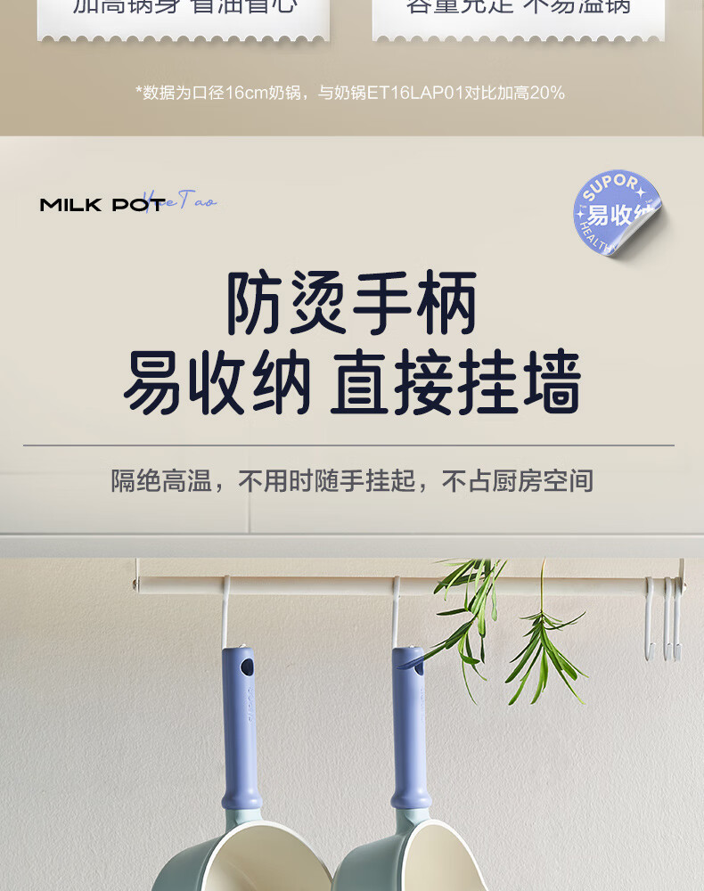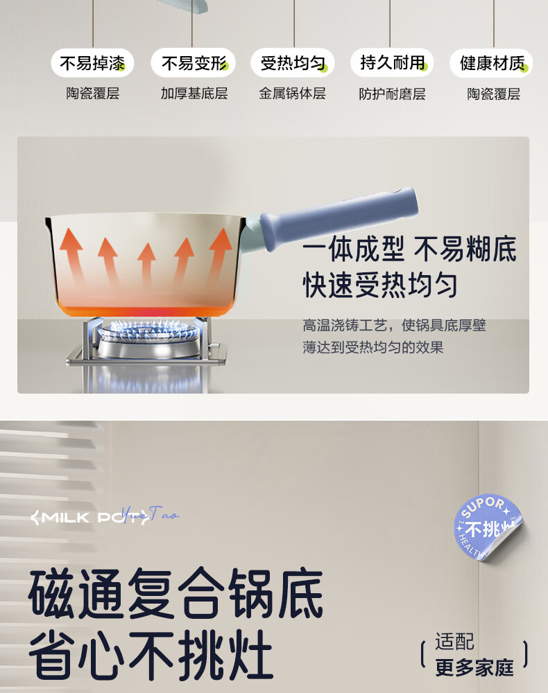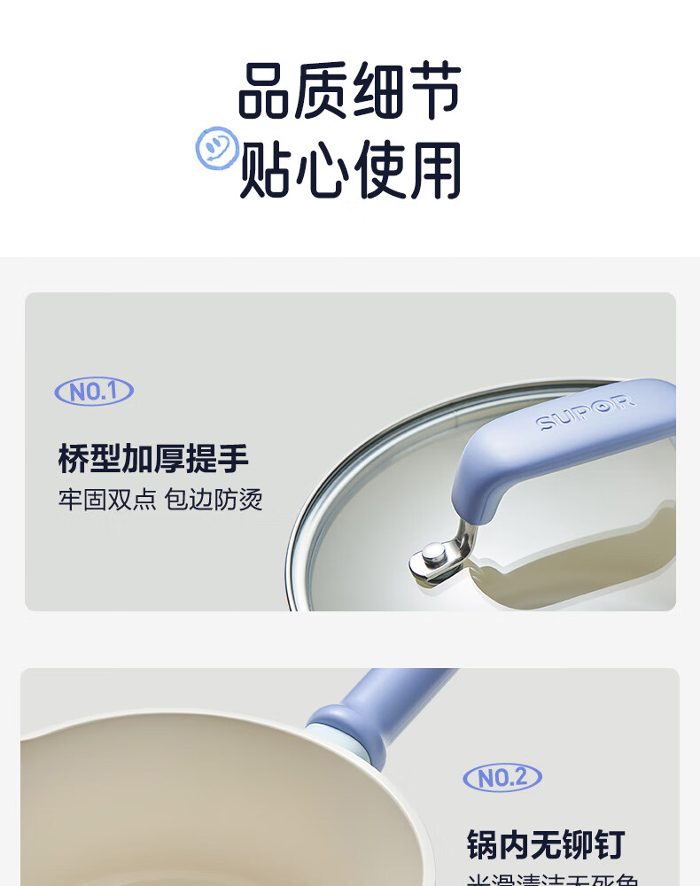 • 商品名称:苏泊尔(SUPOR)奶锅不粘18cm小汤锅煮面热奶宝宝辅食锅电磁炉燃气通用 ET18LBN02/个