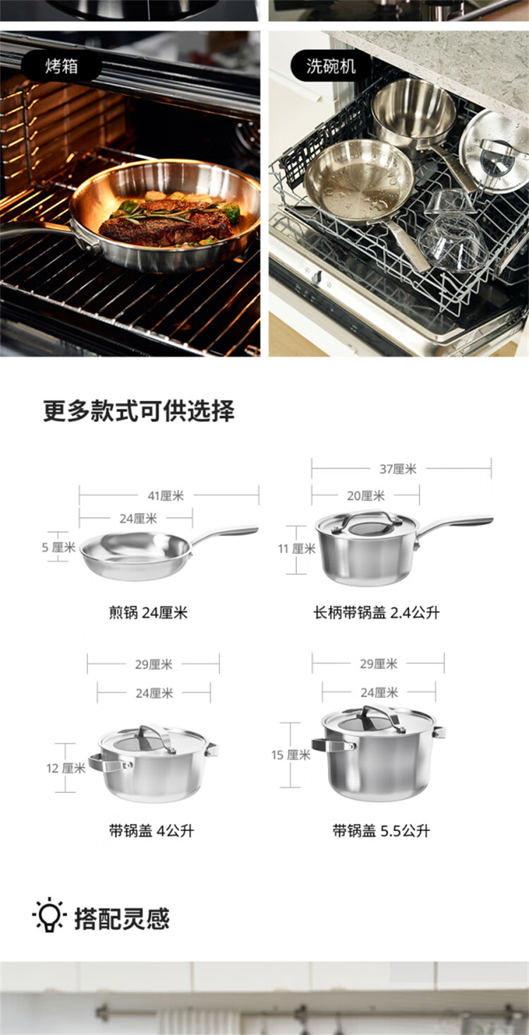 • 商品名称:宜家 IKEA SENSUELL 森苏尔 煎锅 不锈钢/灰色 24厘米 煎锅/个