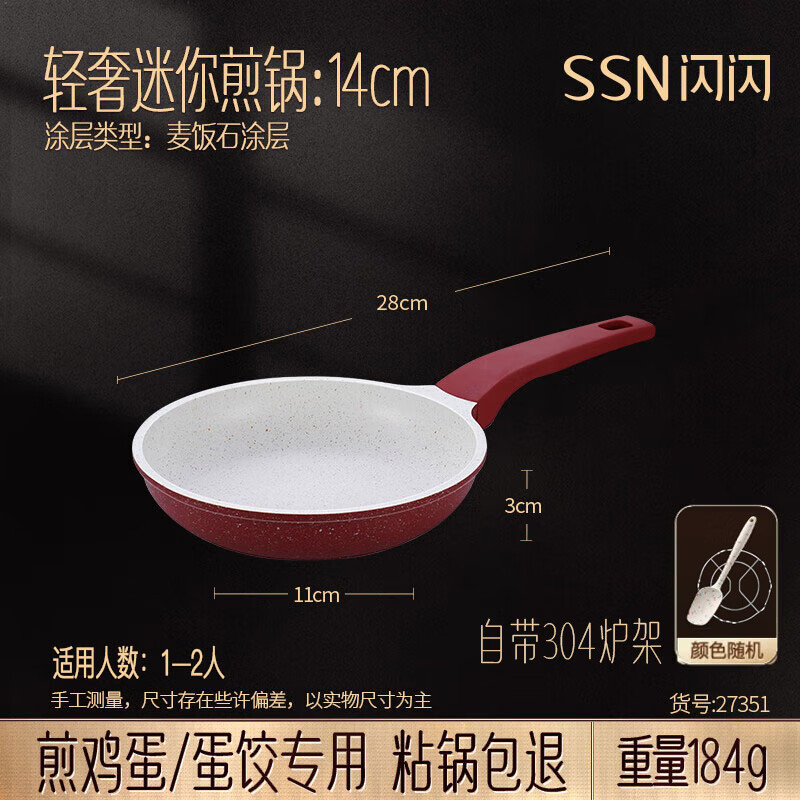 厨具  > 烹饪锅具  > 平底锅/煎锅  >  SSN  >  SSN煎蛋锅不粘锅迷你小煎锅小平底锅煎蛋神器煎鸡蛋锅早餐锅小号煎锅 W27354/个