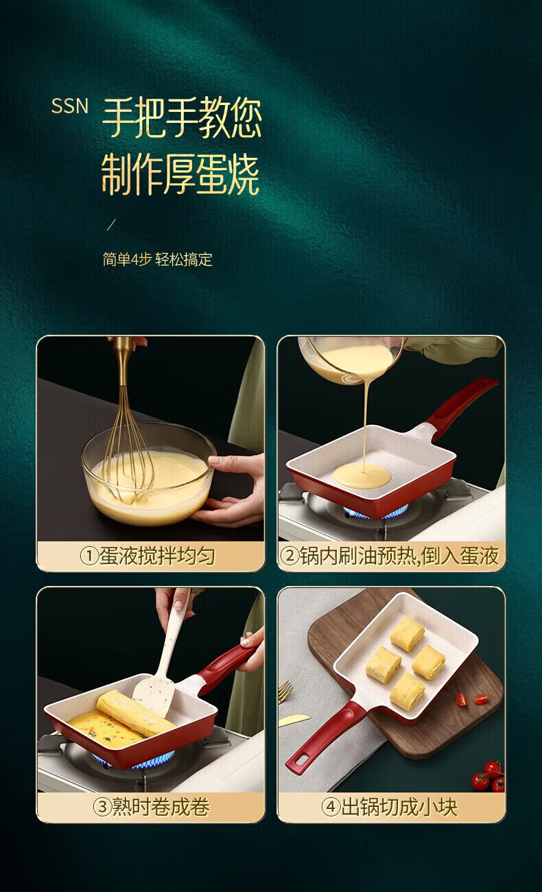 • 商品名称:SSN玉子烧锅厚蛋烧煎锅煎蛋锅早餐锅蛋烧锅平底锅不粘锅长方形鸡蛋卷 W27294/个