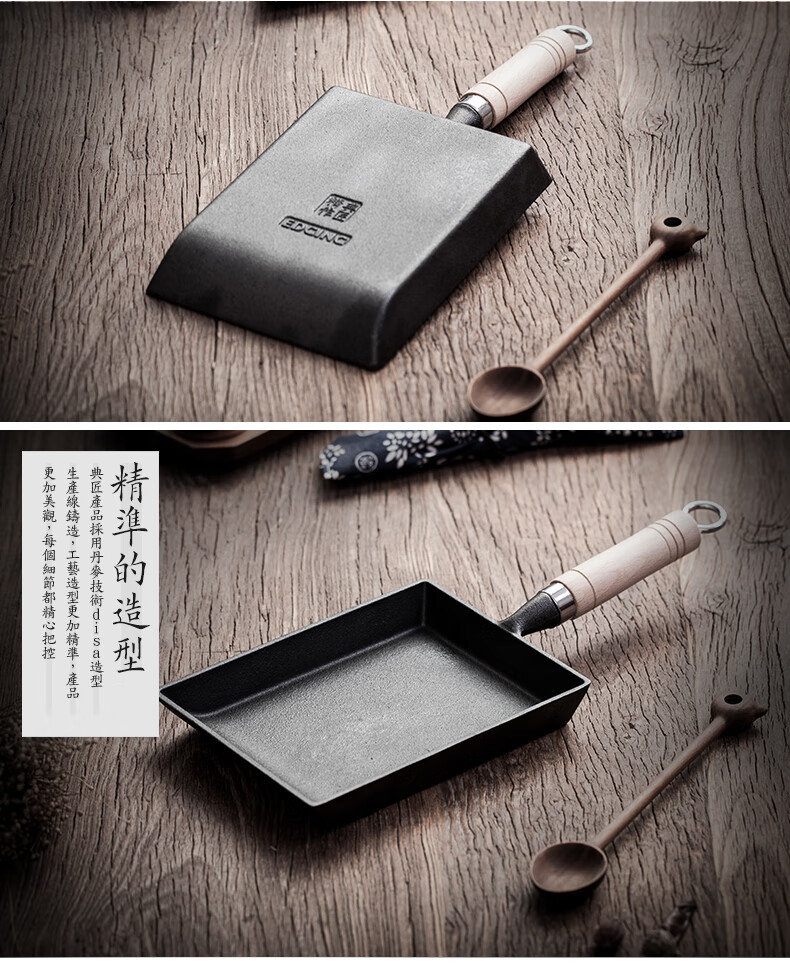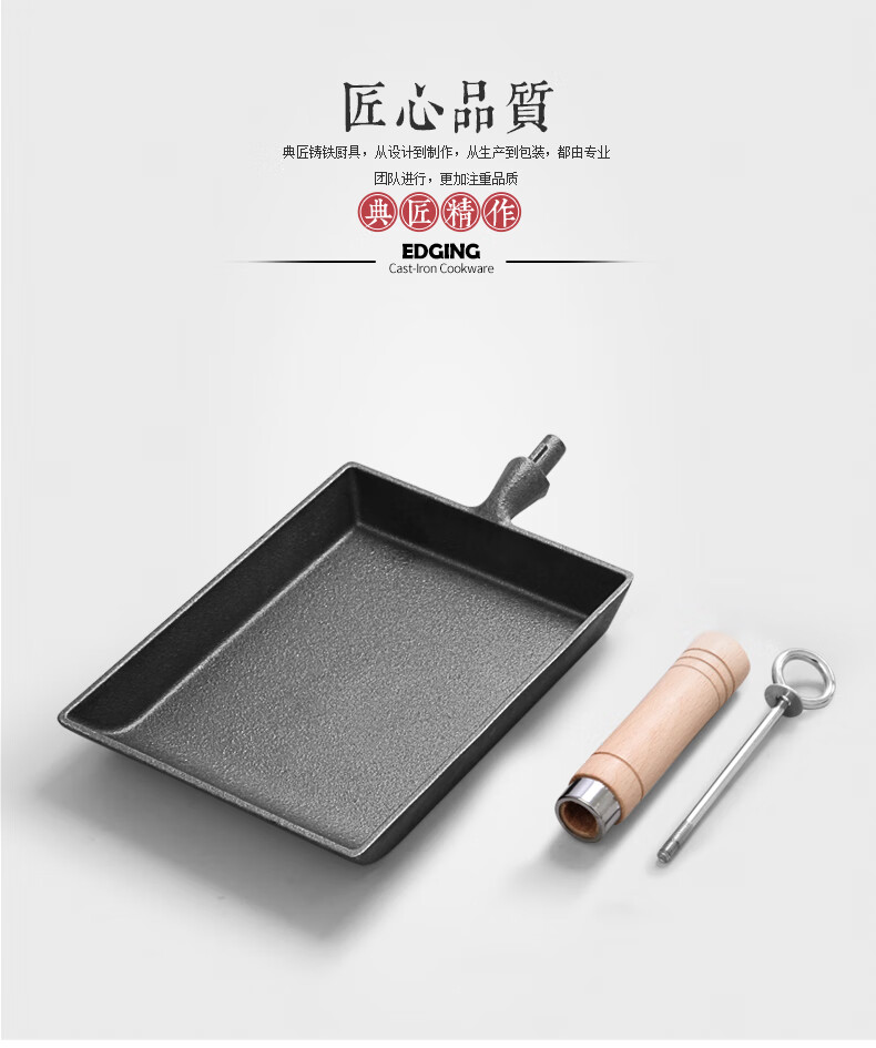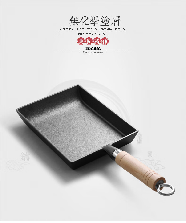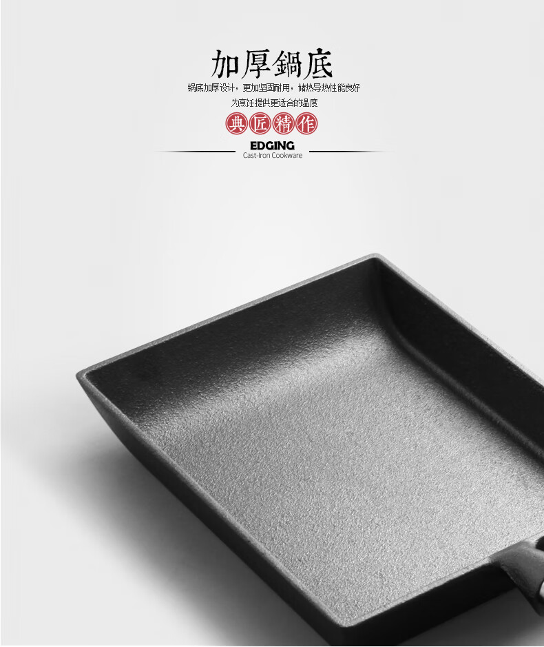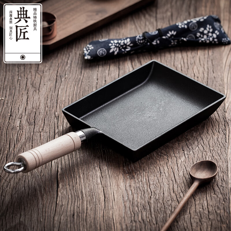 商品名称: 典匠玉子烧方形煎锅铸铁锅无涂层不易粘早餐鸡蛋卷锅厚蛋烧煎蛋平底锅 典匠玉子烧煎锅/个