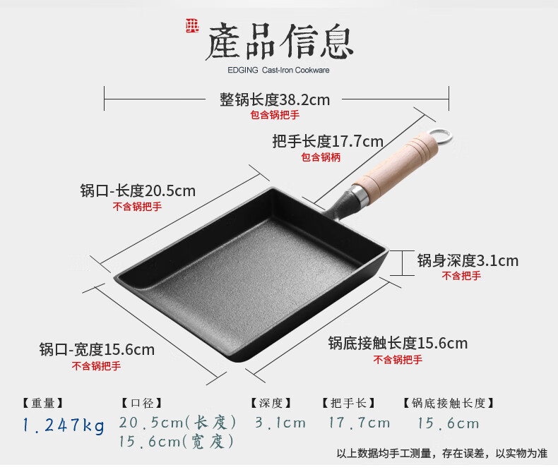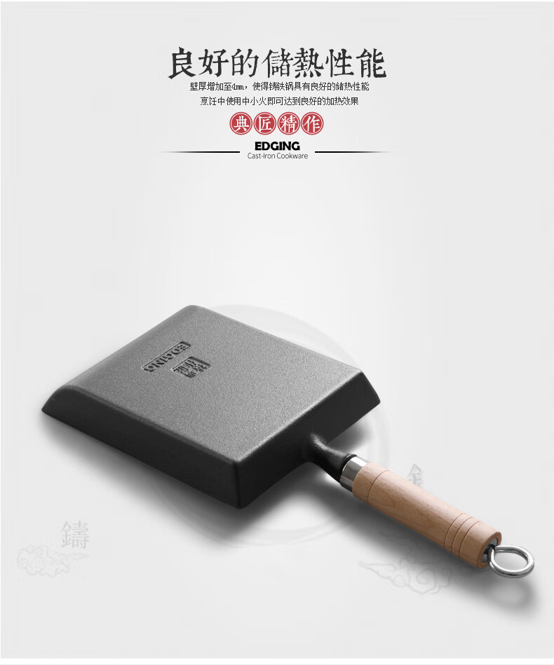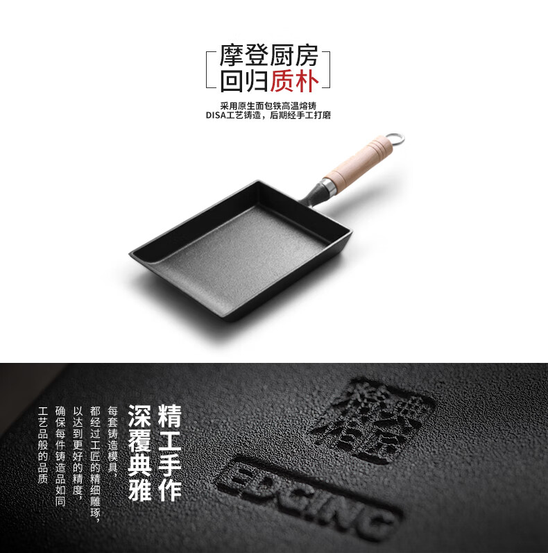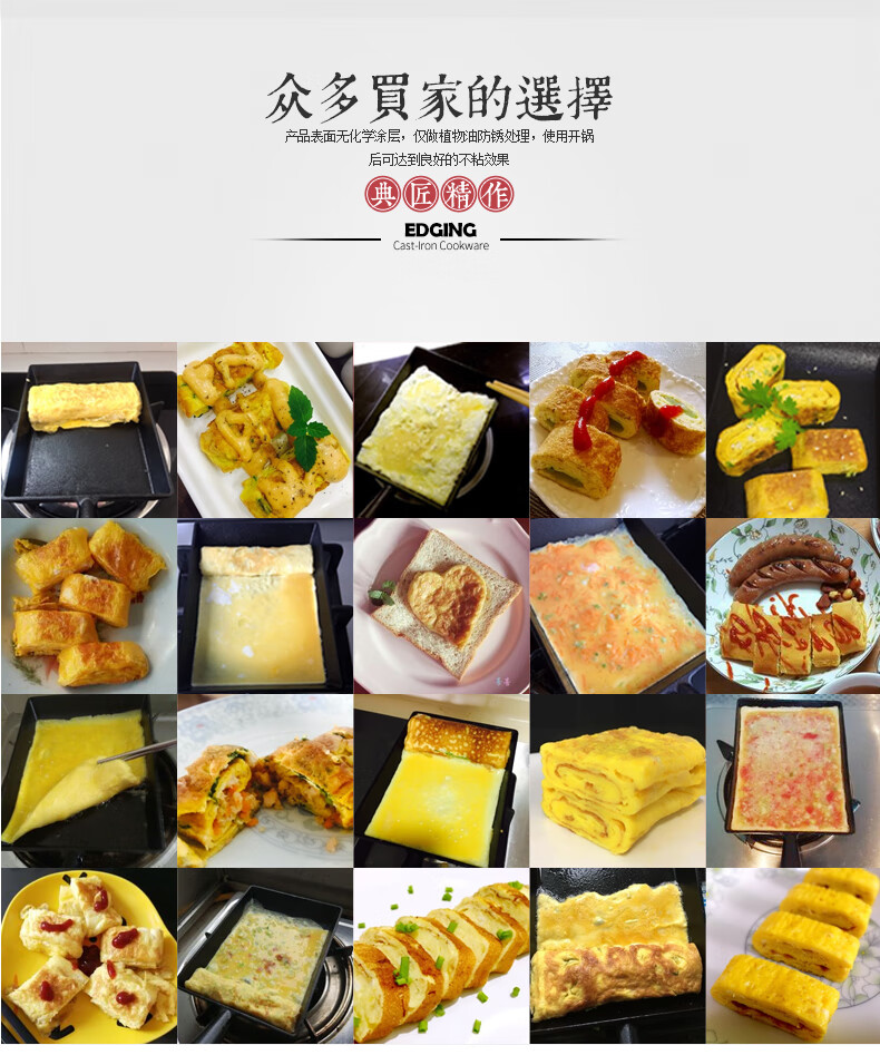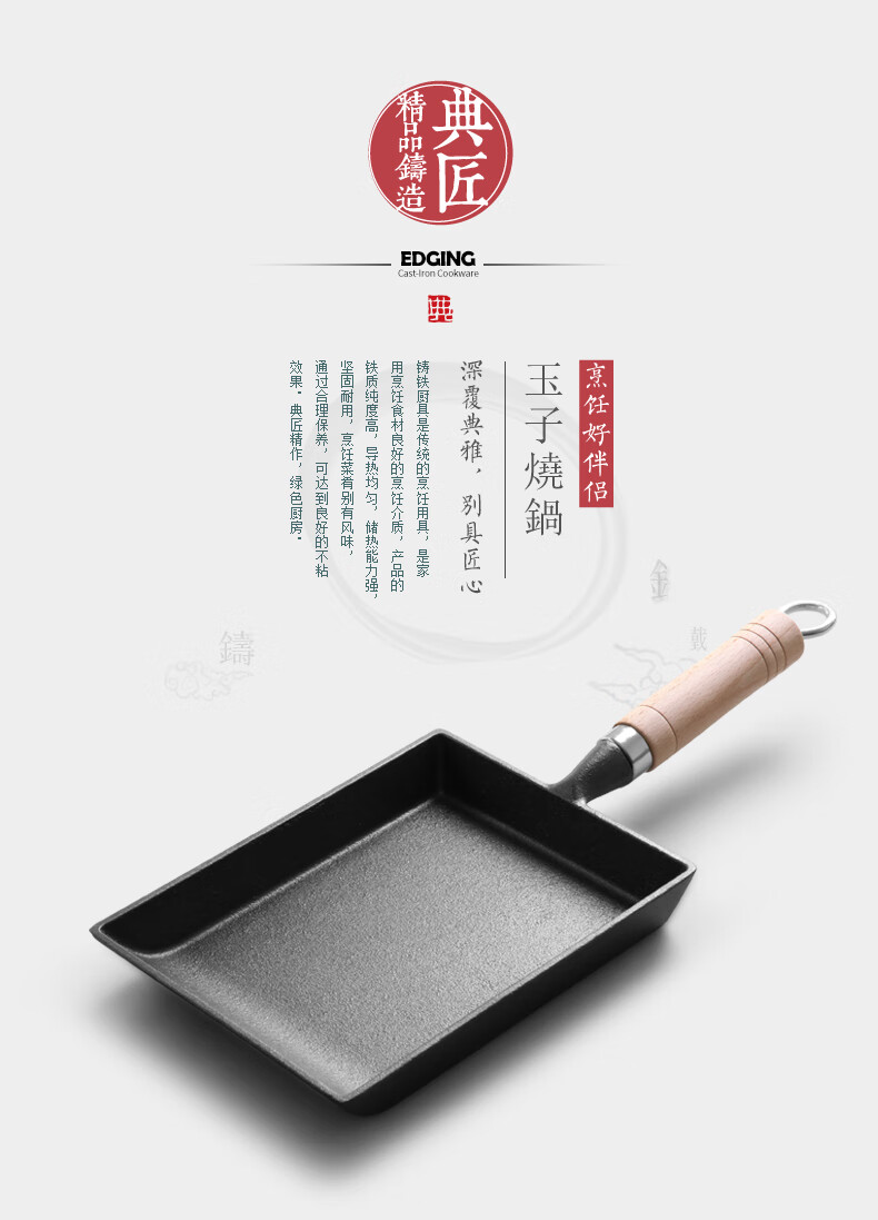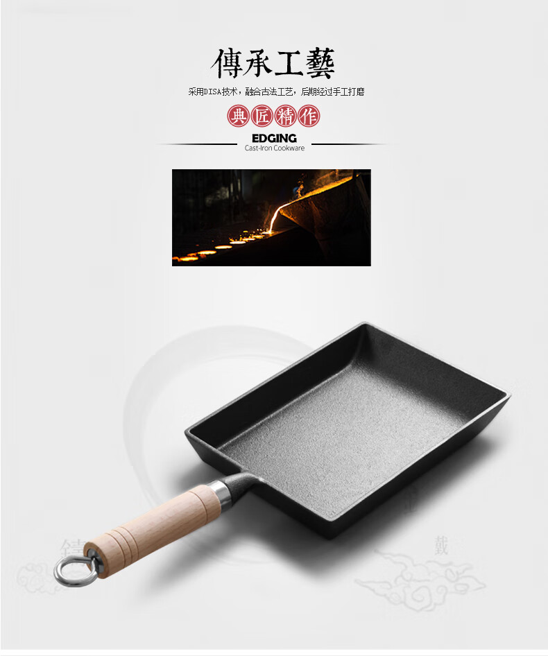 商品名称: 典匠玉子烧方形煎锅铸铁锅无涂层不易粘早餐鸡蛋卷锅厚蛋烧煎蛋平底锅 典匠玉子烧煎锅/个
