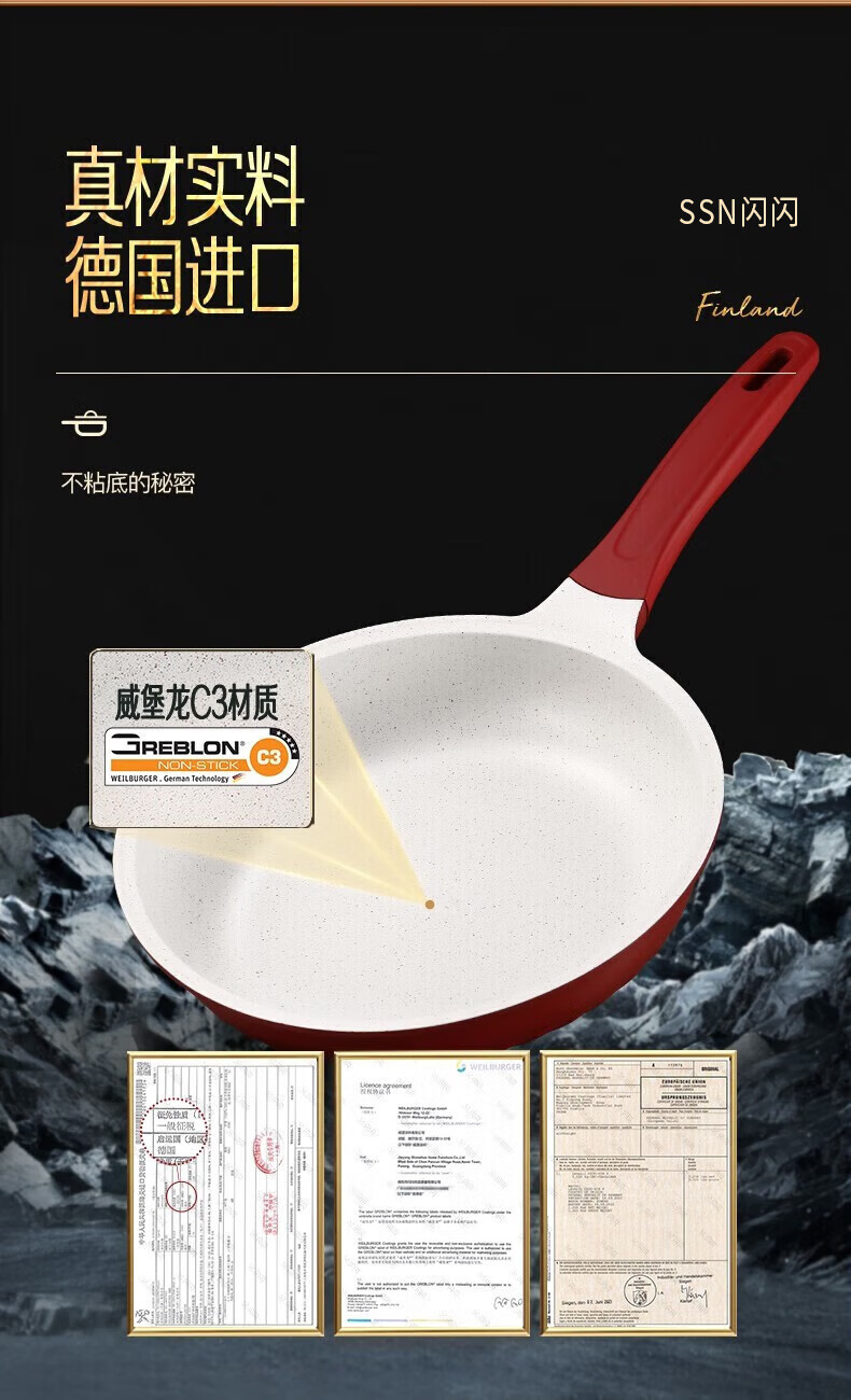 SSN麦饭石色平底锅不粘锅煎蛋锅煎饼锅平底锅不沾锅牛排煎锅平底不粘 26251/个
