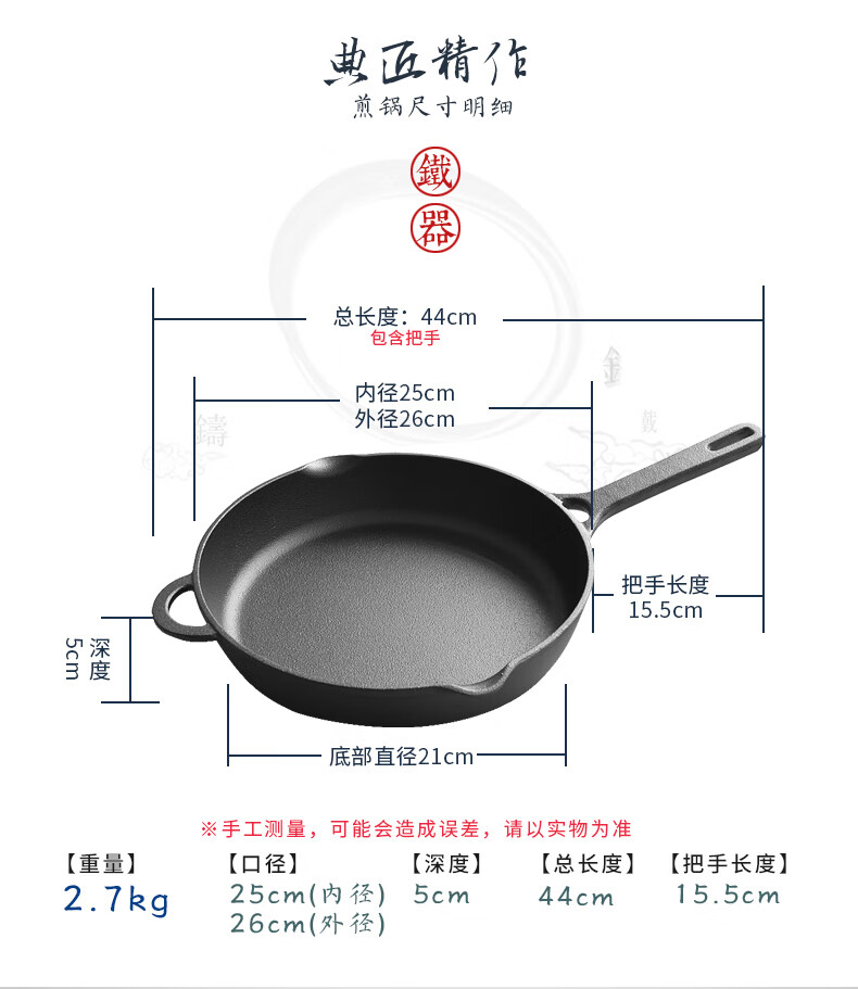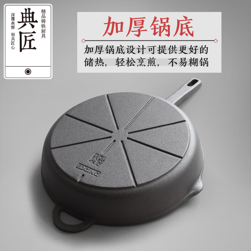 • 商品名称:典匠平底锅煎锅铸铁锅煎蛋牛排锅无涂层煎饼锅燃气灶锅具26cm 典匠26cm单柄煎锅/个