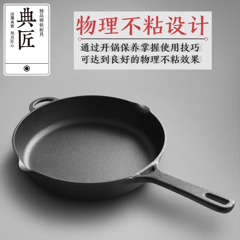 典匠平底锅煎锅铸铁锅煎蛋牛排锅无涂层煎饼锅燃气灶锅具26cm 典匠26cm单柄煎锅/个