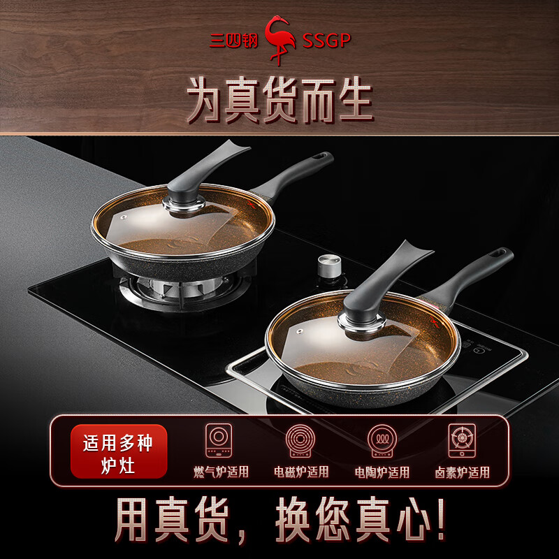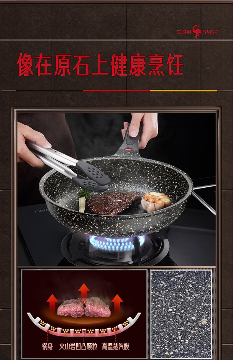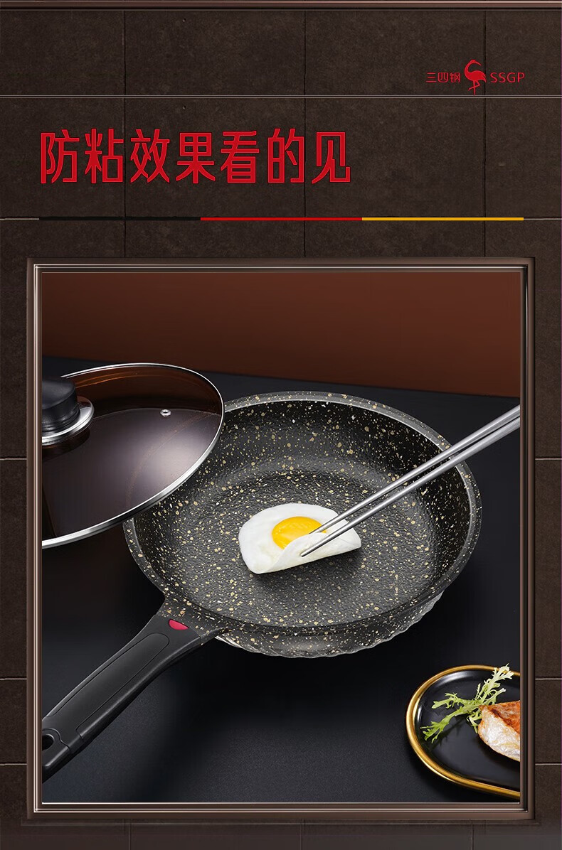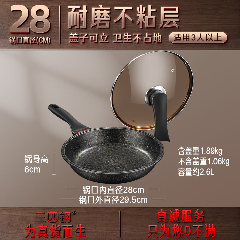 商品名称: 三四钢®平底锅煎锅麦饭石色不粘锅家用煎蛋饼牛排专用早餐锅28cm 38131 26913 法兰克福煎锅:28cm/个
