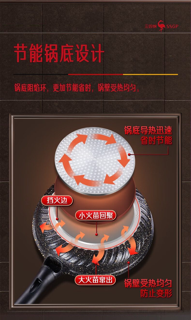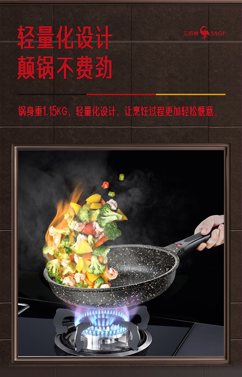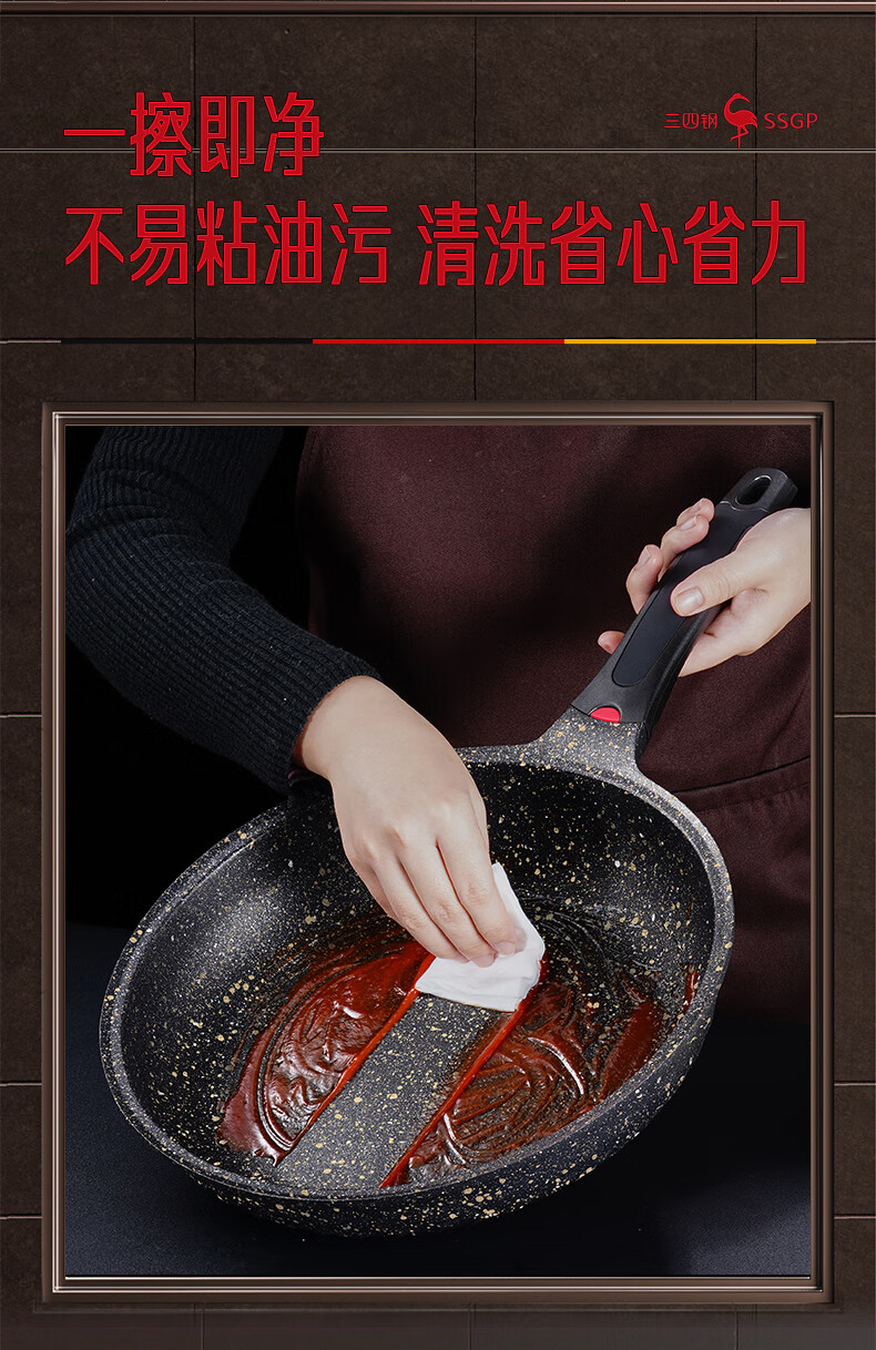 • 商品名称:三四钢®平底锅煎锅麦饭石色不粘锅家用煎蛋饼牛排专用早餐锅28cm 38131 26913 法兰克福煎锅:28cm/个