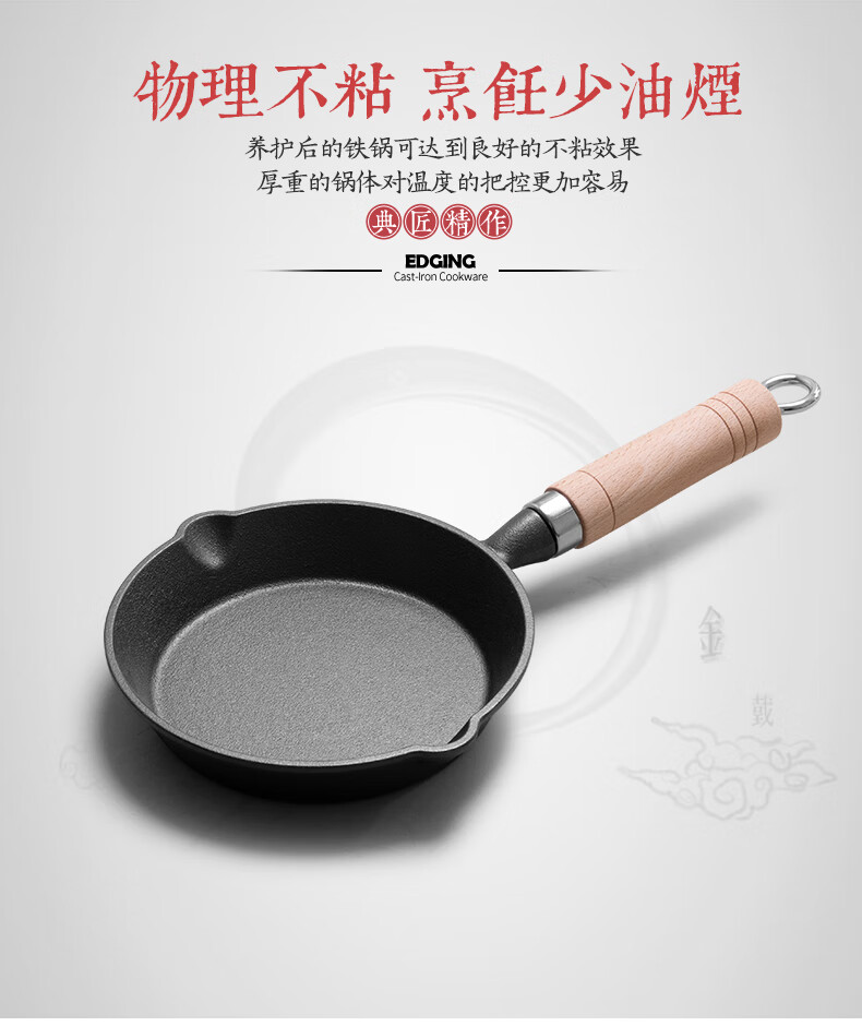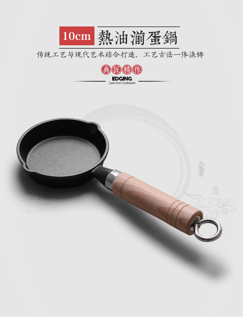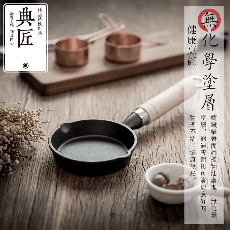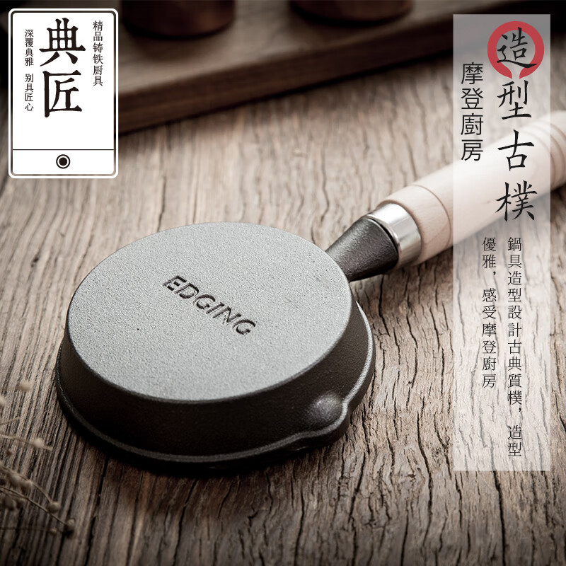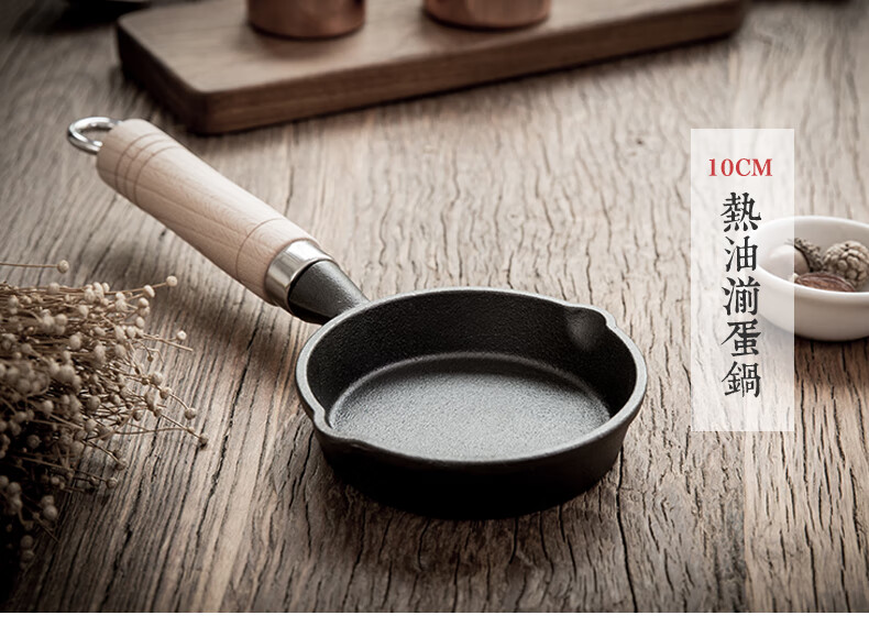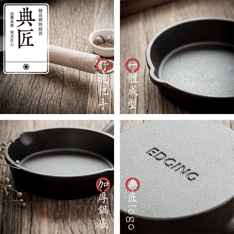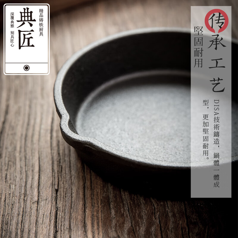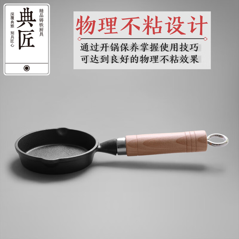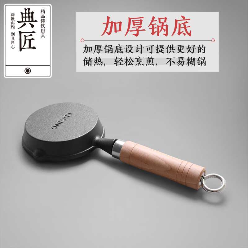 • 商品名称:典匠铸铁煎锅平底锅家用迷你煎蛋锅泼油锅小铁锅无涂层烧油锅早餐10cm 浅泼油锅+燃气灶支架10cm/个