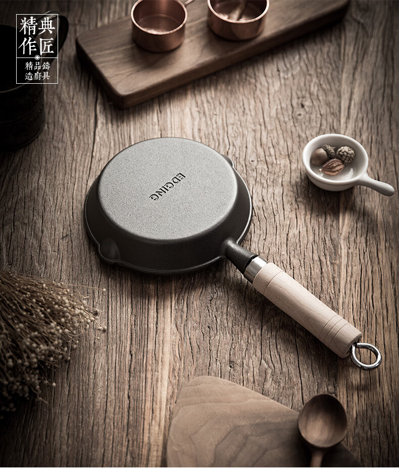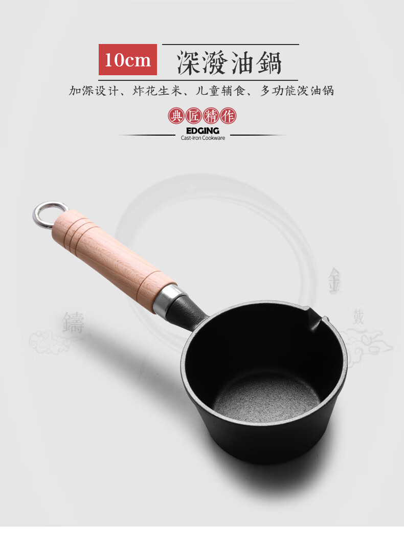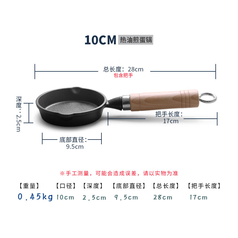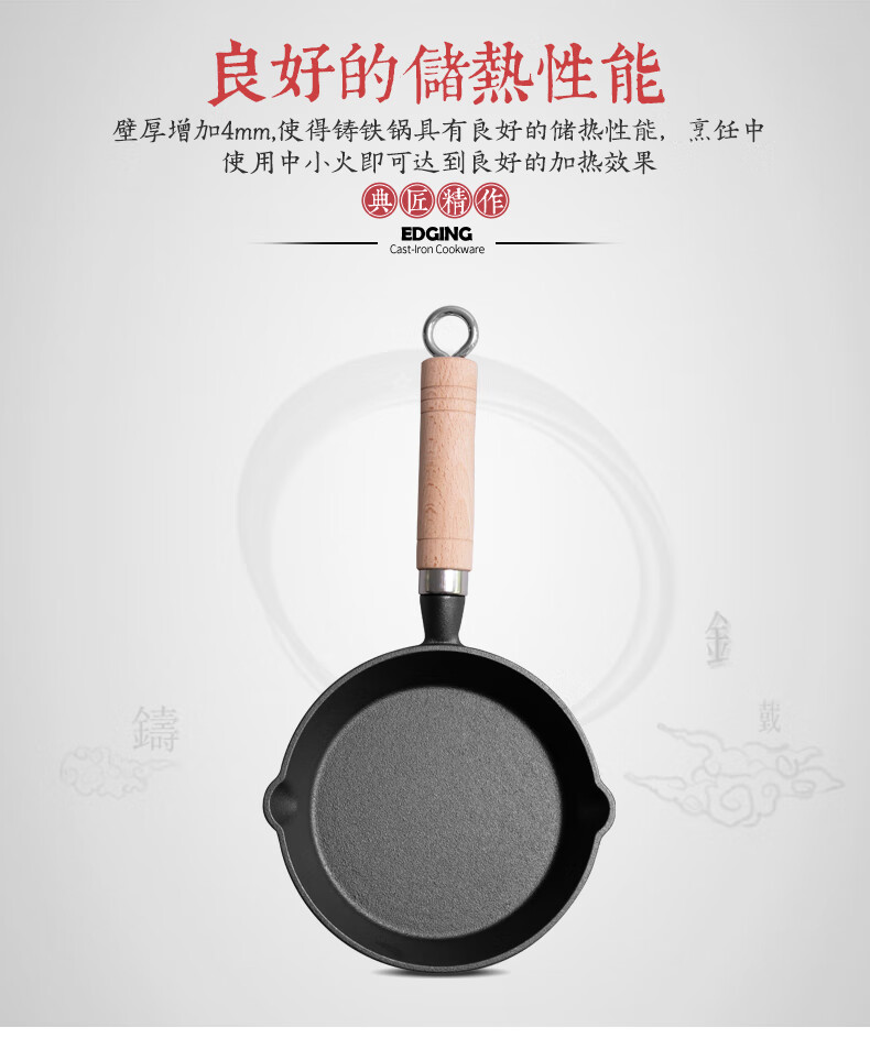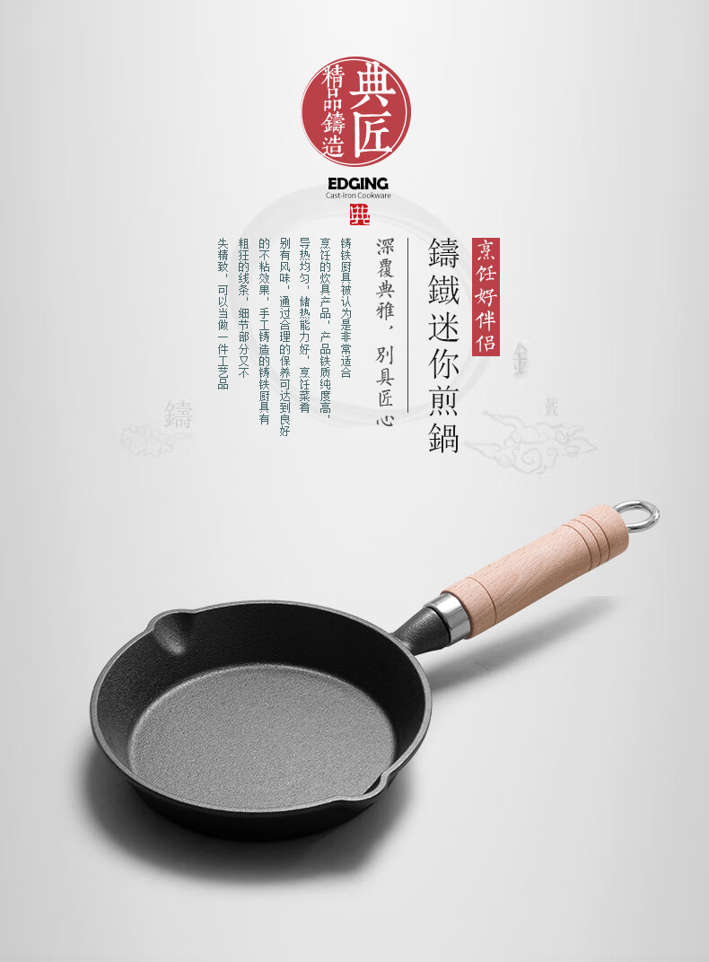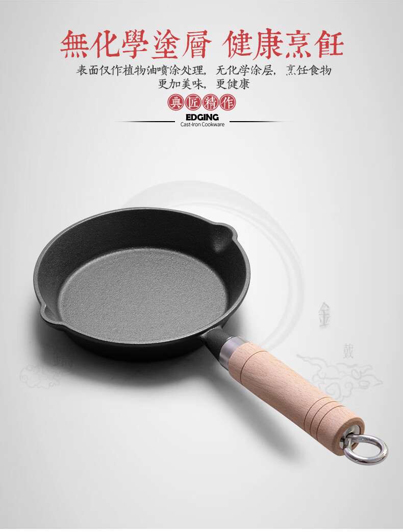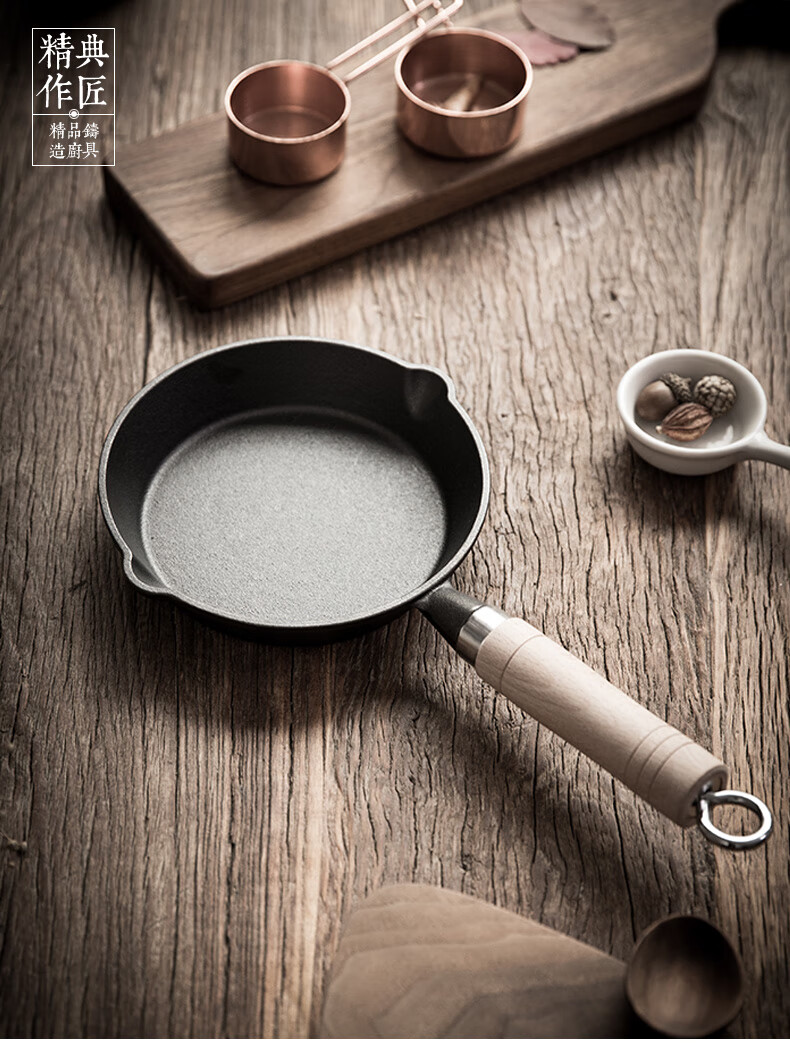 • 商品名称:典匠铸铁煎锅平底锅家用迷你煎蛋锅泼油锅小铁锅无涂层烧油锅早餐10cm 浅泼油锅+燃气灶支架10cm/个