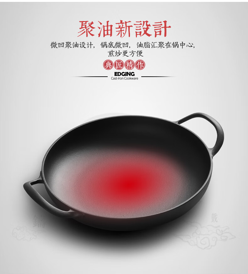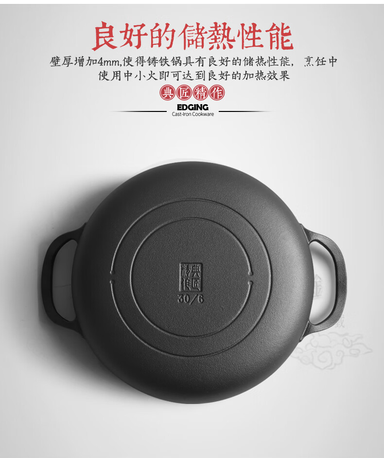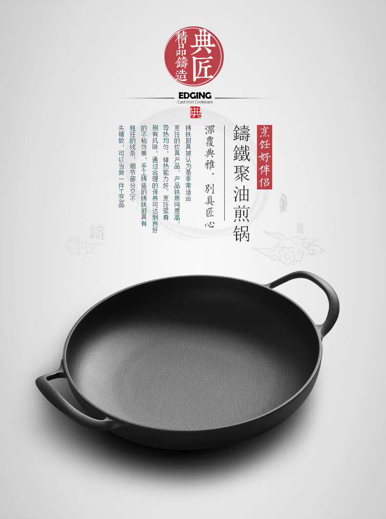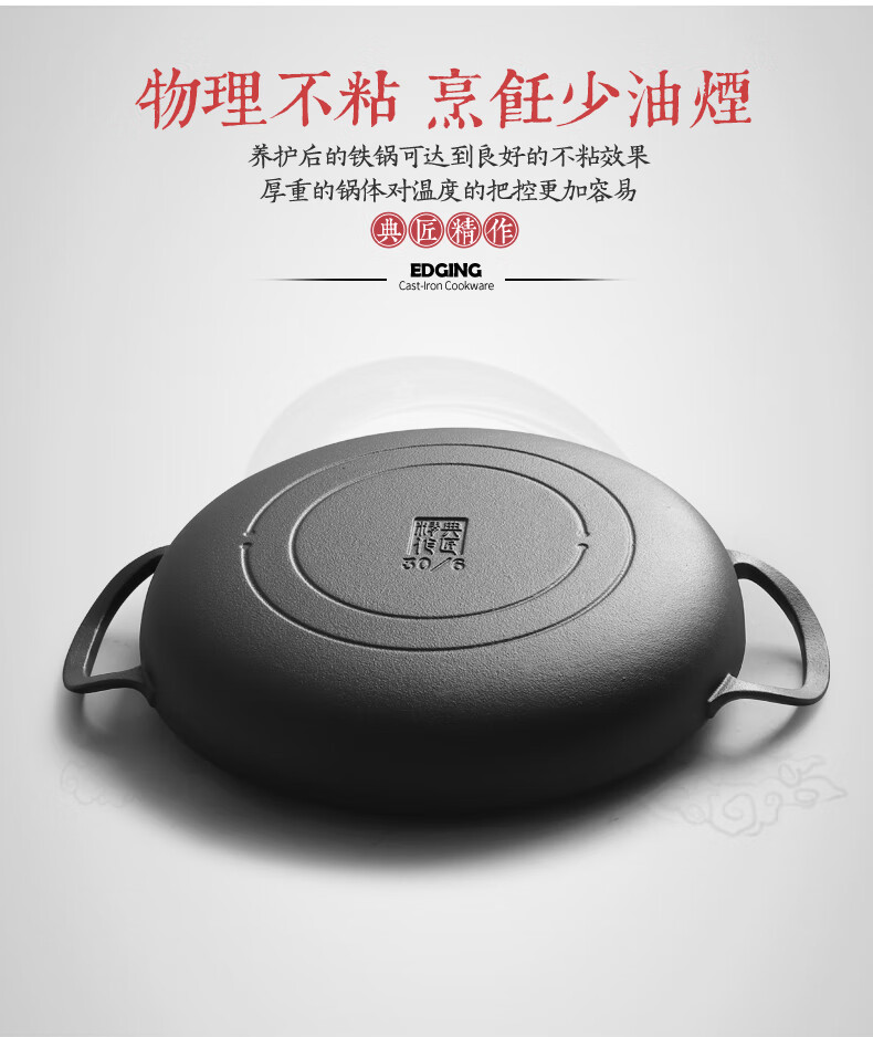 • 商品名称:典匠铸铁煎锅无涂层生铁聚油平底锅牛排煎锅水煎包烙饼锅加厚30cm 典匠30cm聚油煎锅/个