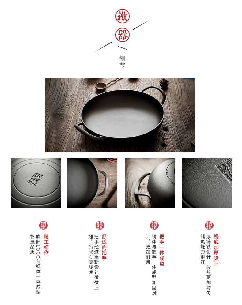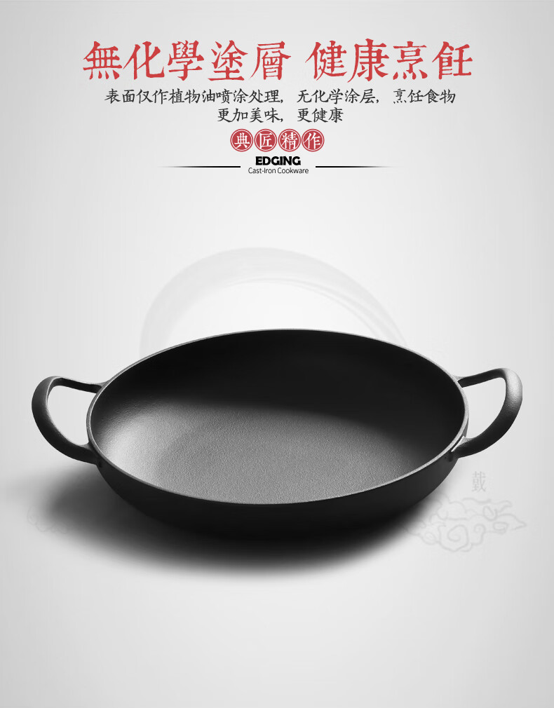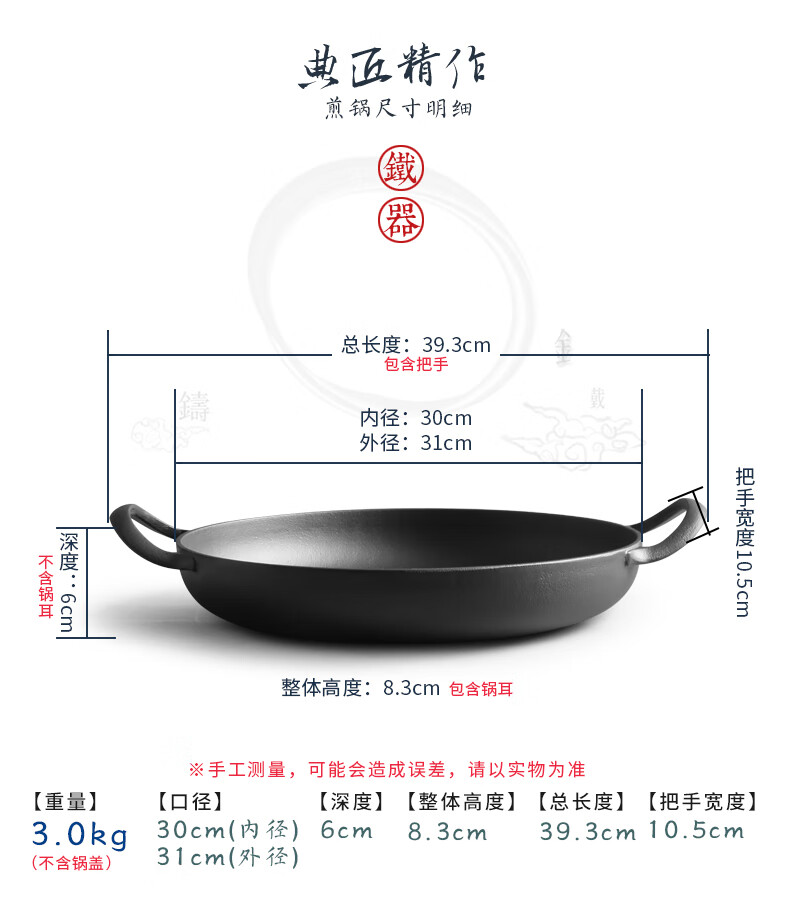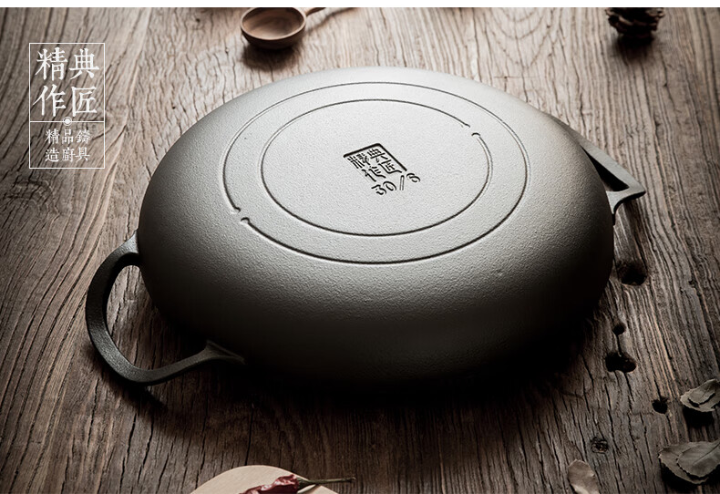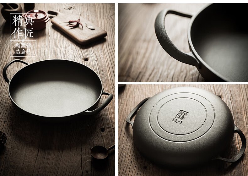• 商品名称:典匠铸铁煎锅无涂层生铁聚油平底锅牛排煎锅水煎包烙饼锅加厚30cm 典匠30cm聚油煎锅/个