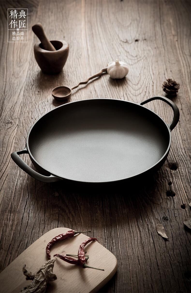 典匠铸铁煎锅无涂层生铁聚油平底锅牛排煎锅水煎包烙饼锅加厚30cm 典匠30cm聚油煎锅/个