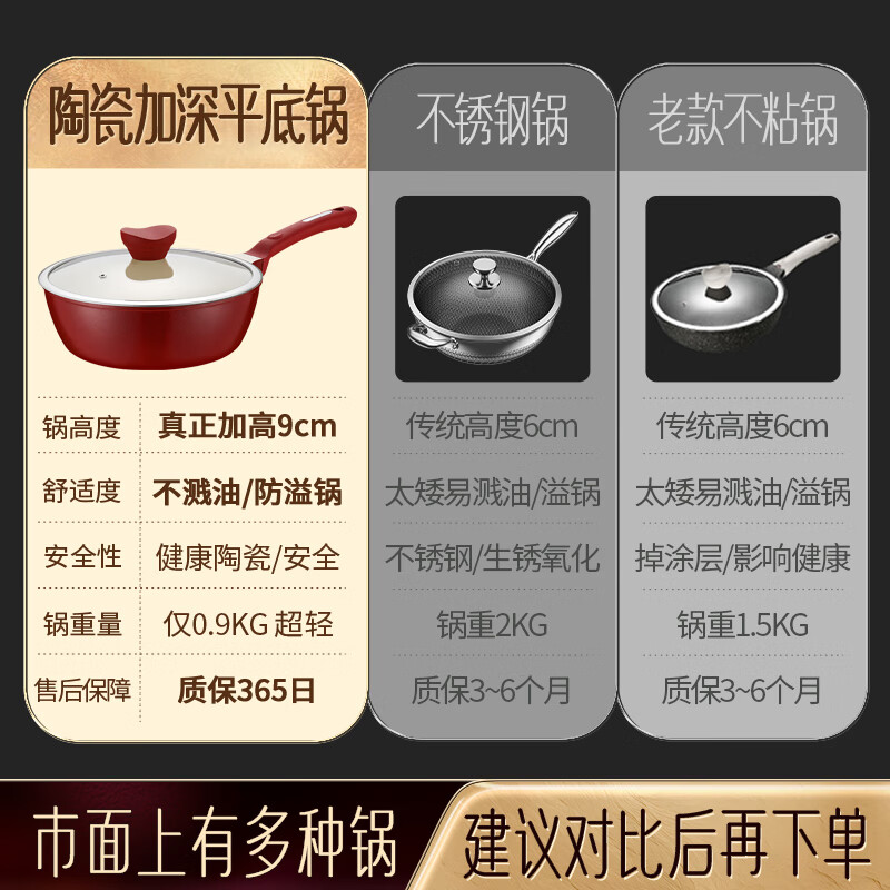 厨具  > 烹饪锅具  > 平底锅/煎锅  >  SSN  >  SSN钛陶瓷平底锅煎锅陶瓷不粘锅平底煎锅煎蛋锅小煎锅燃气加深电磁炉 33941/个
