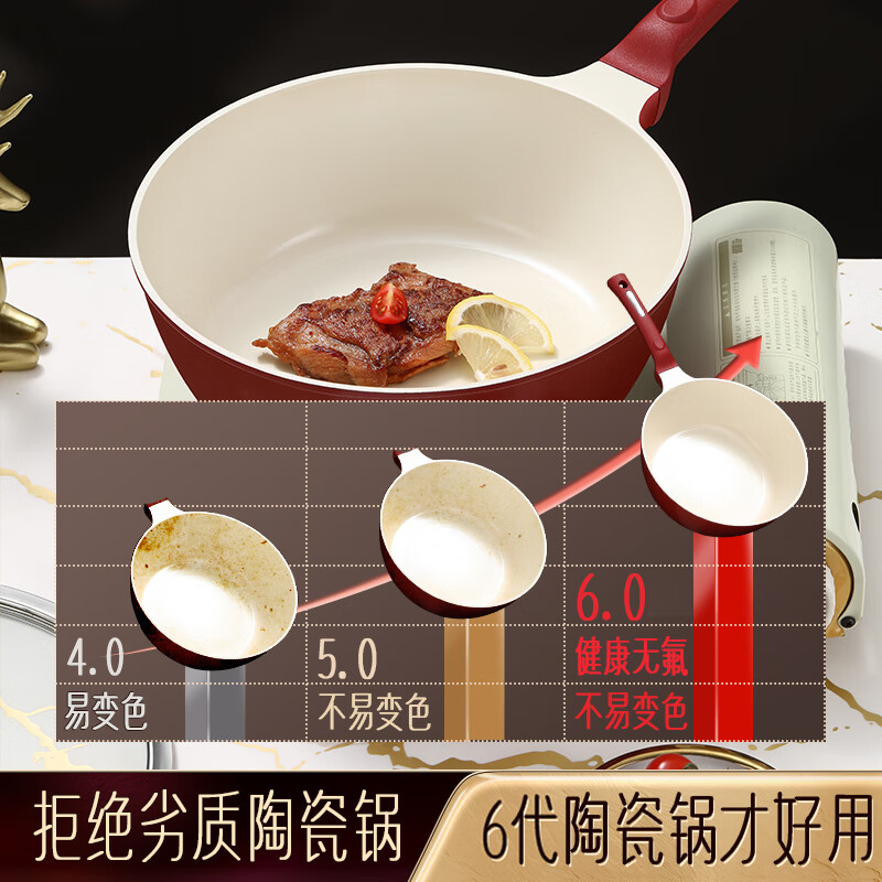 SSN钛陶瓷平底锅煎锅陶瓷不粘锅平底煎锅煎蛋锅小煎锅燃气加深电磁炉 33941/个