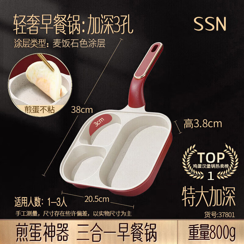 SSN三合一早餐锅加深煎蛋锅煎蛋神器早餐煎锅蛋堡锅煎饼锅鸡蛋汉堡锅 W32932/个