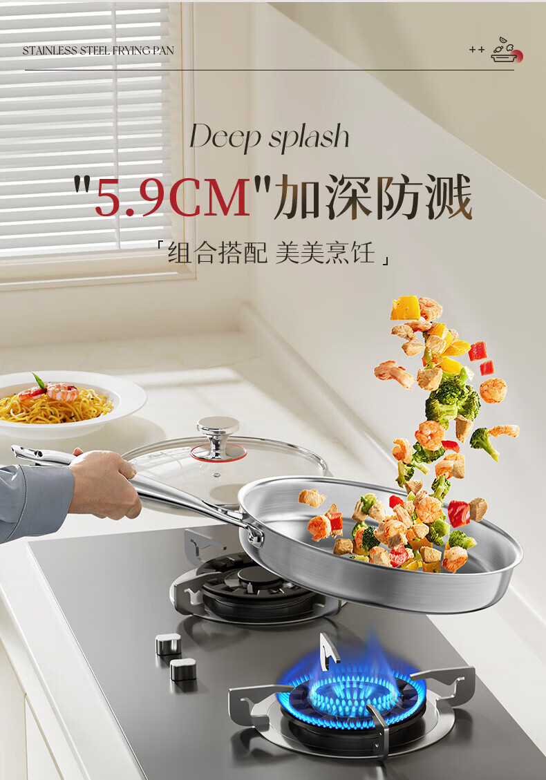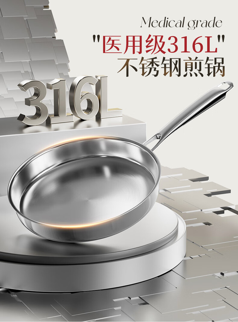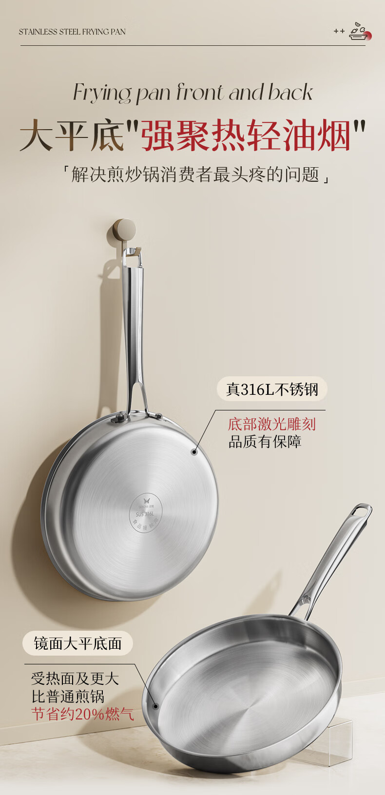 • 商品名称:双枪316L不锈钢平底煎锅 家用加厚无涂层煎蛋烙饼牛排不粘锅26cm DG40614/个