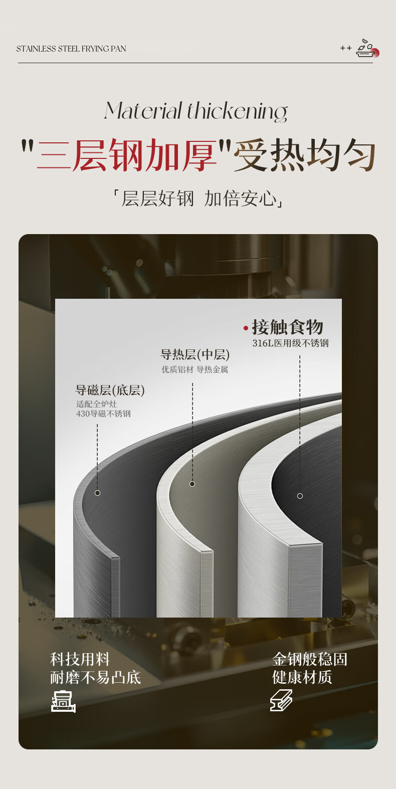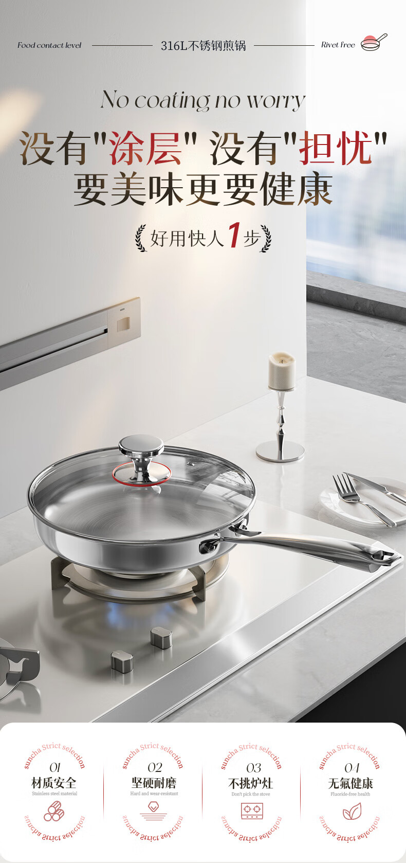厨具  > 烹饪锅具  > 平底锅/煎锅  >  双枪/Suncha  >  双枪316L不锈钢平底煎锅 家用加厚无涂层煎蛋烙饼牛排不粘锅26cm DG40614/个