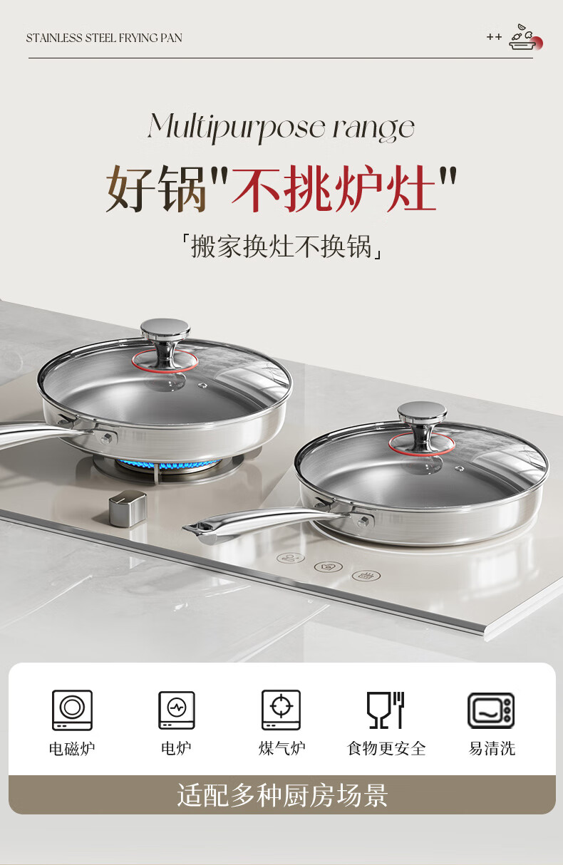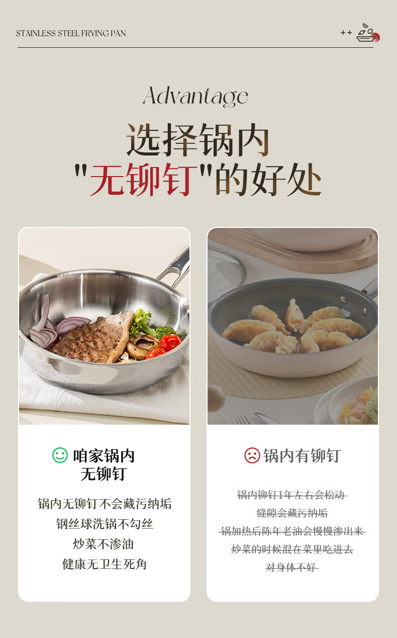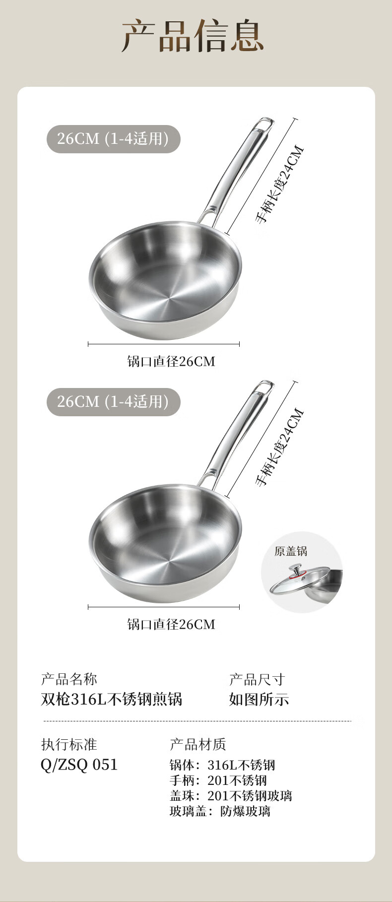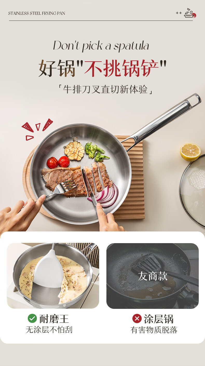 商品名称: 双枪316L不锈钢平底煎锅 家用加厚无涂层煎蛋烙饼牛排不粘锅26cm DG40614/个