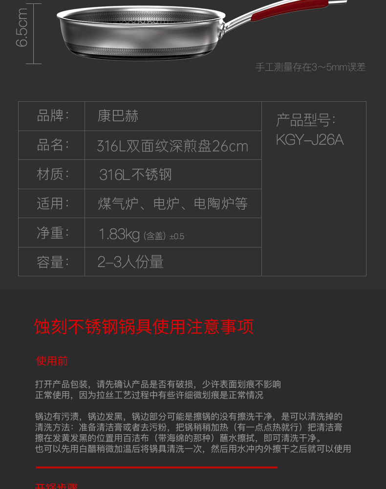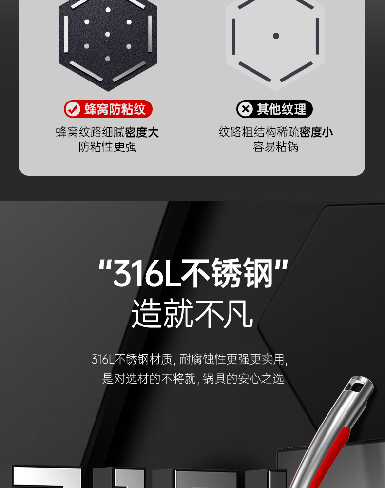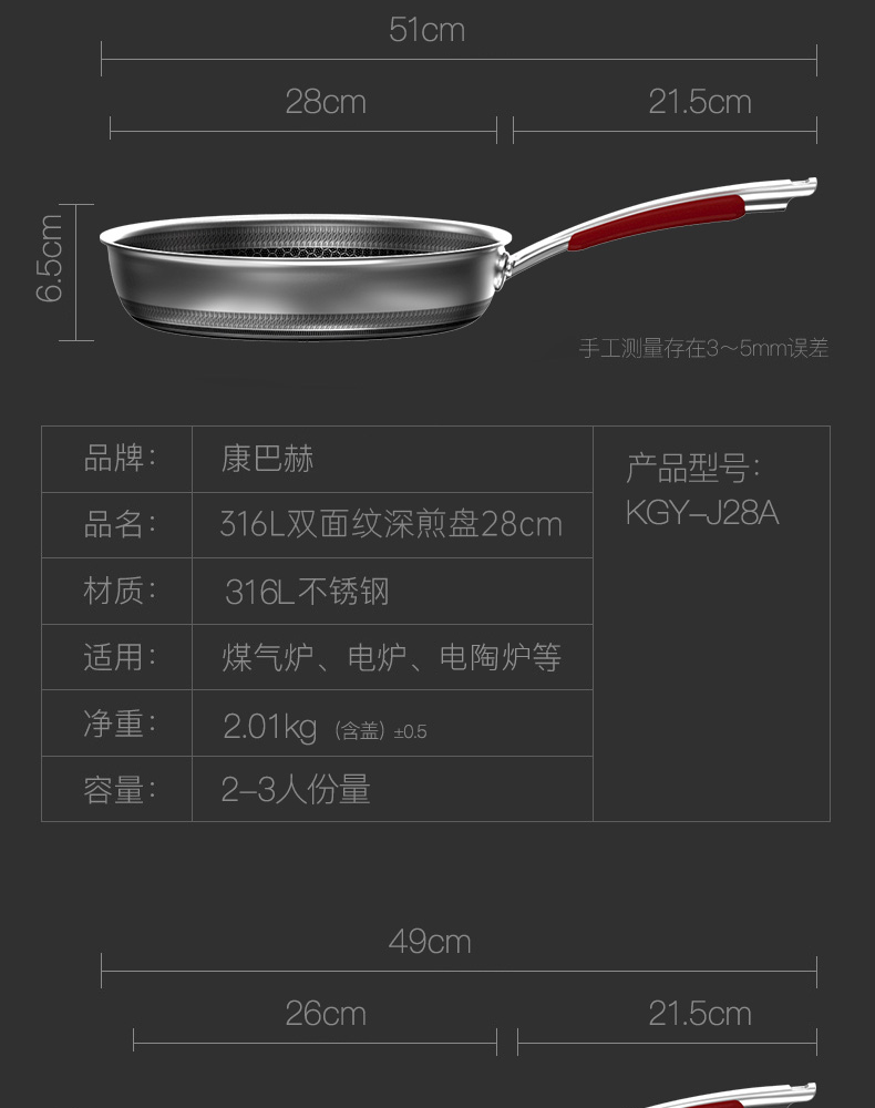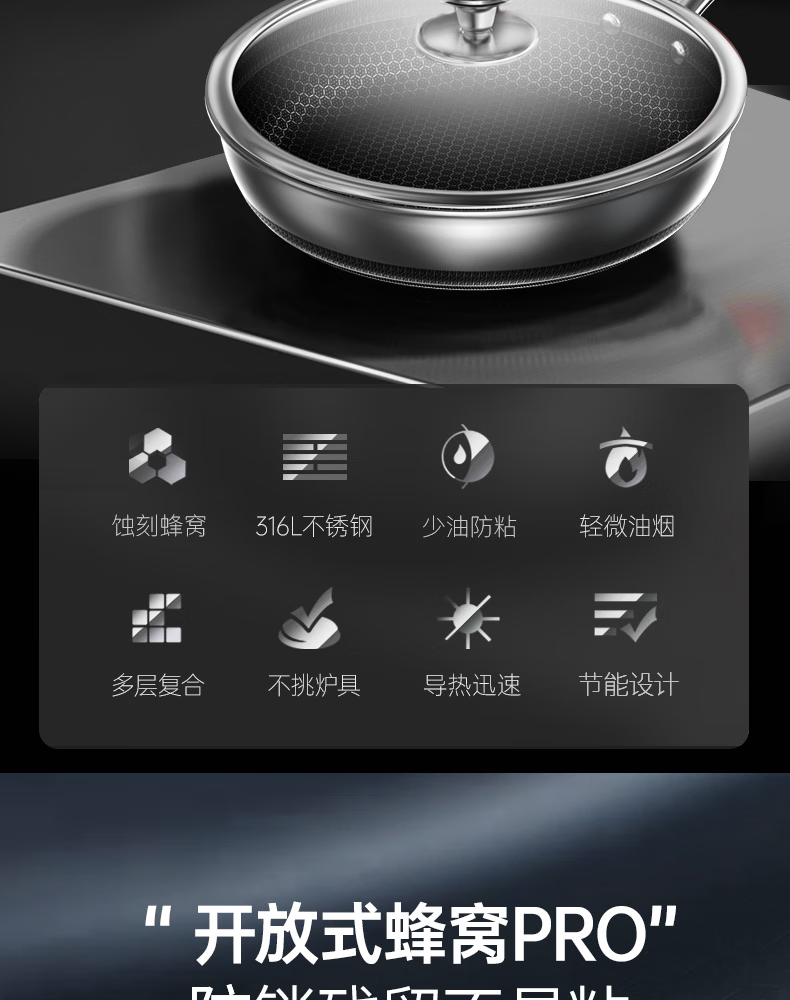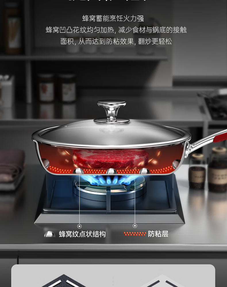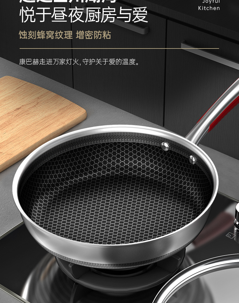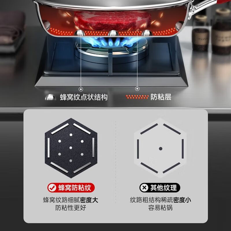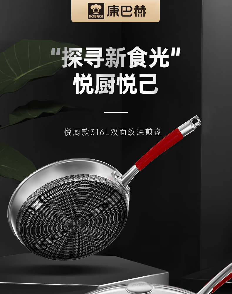 • 商品名称:康巴赫(KOBACH)煎锅316L不锈钢不粘平底锅少油烟煎蛋煎牛排双面蜂窝悦厨款 【悦厨款煎锅28cm+钢铲】/箱