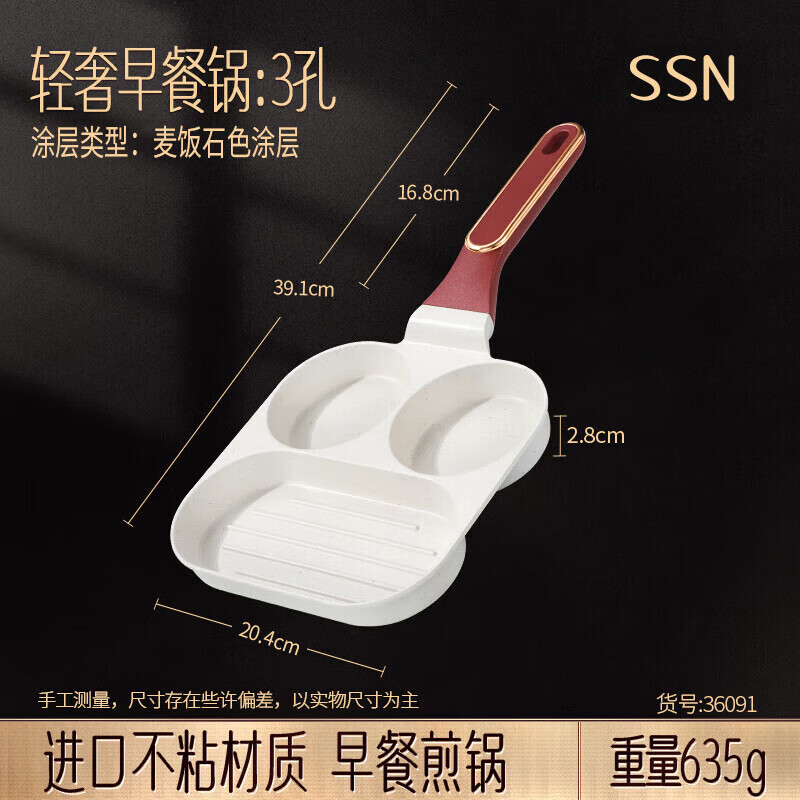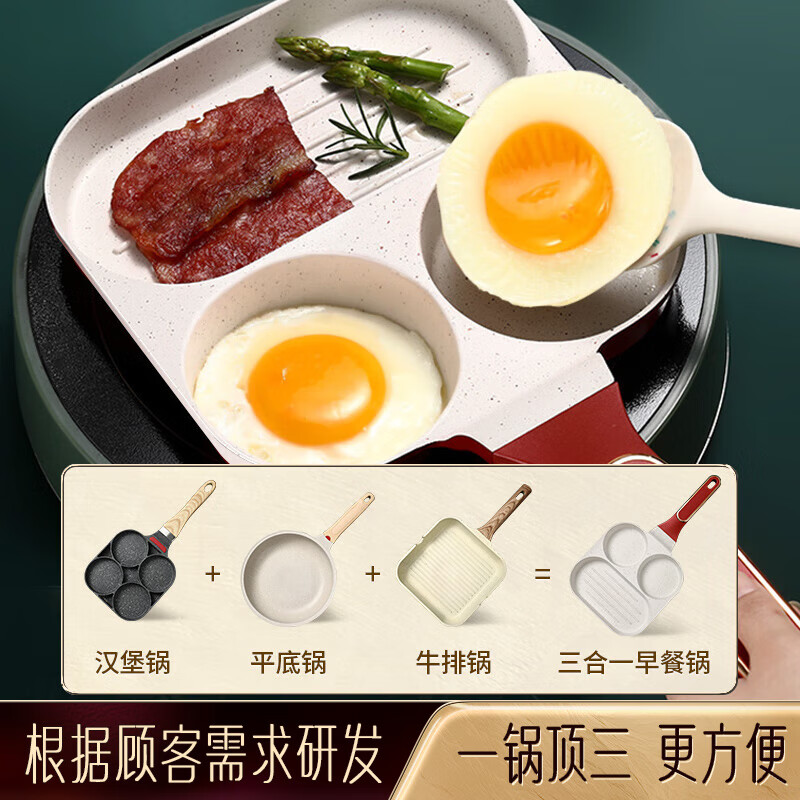 商品名称: SSN牛排煎锅三合一早餐锅煎蛋神器三合一煎蛋锅蛋堡锅煎蛋器麦饭石色 36091/个