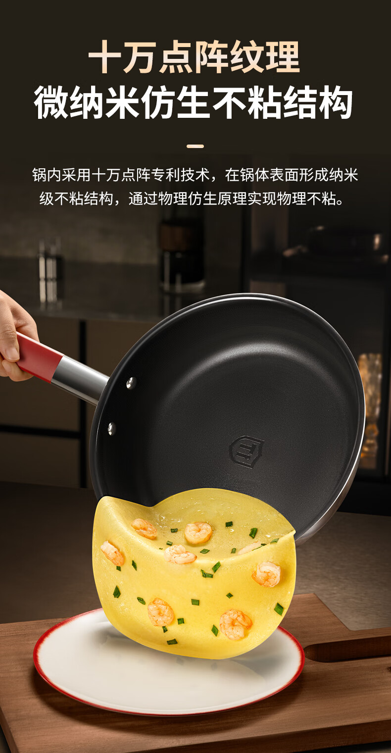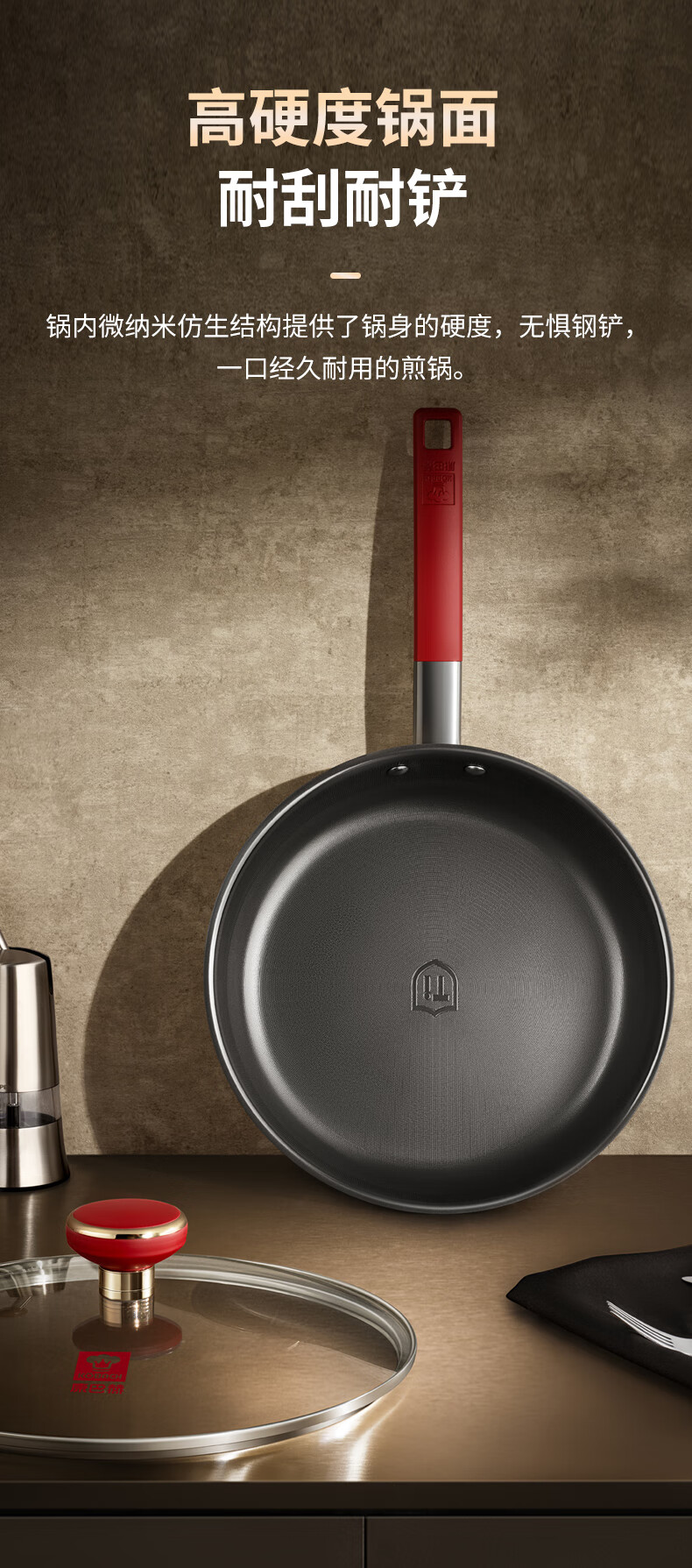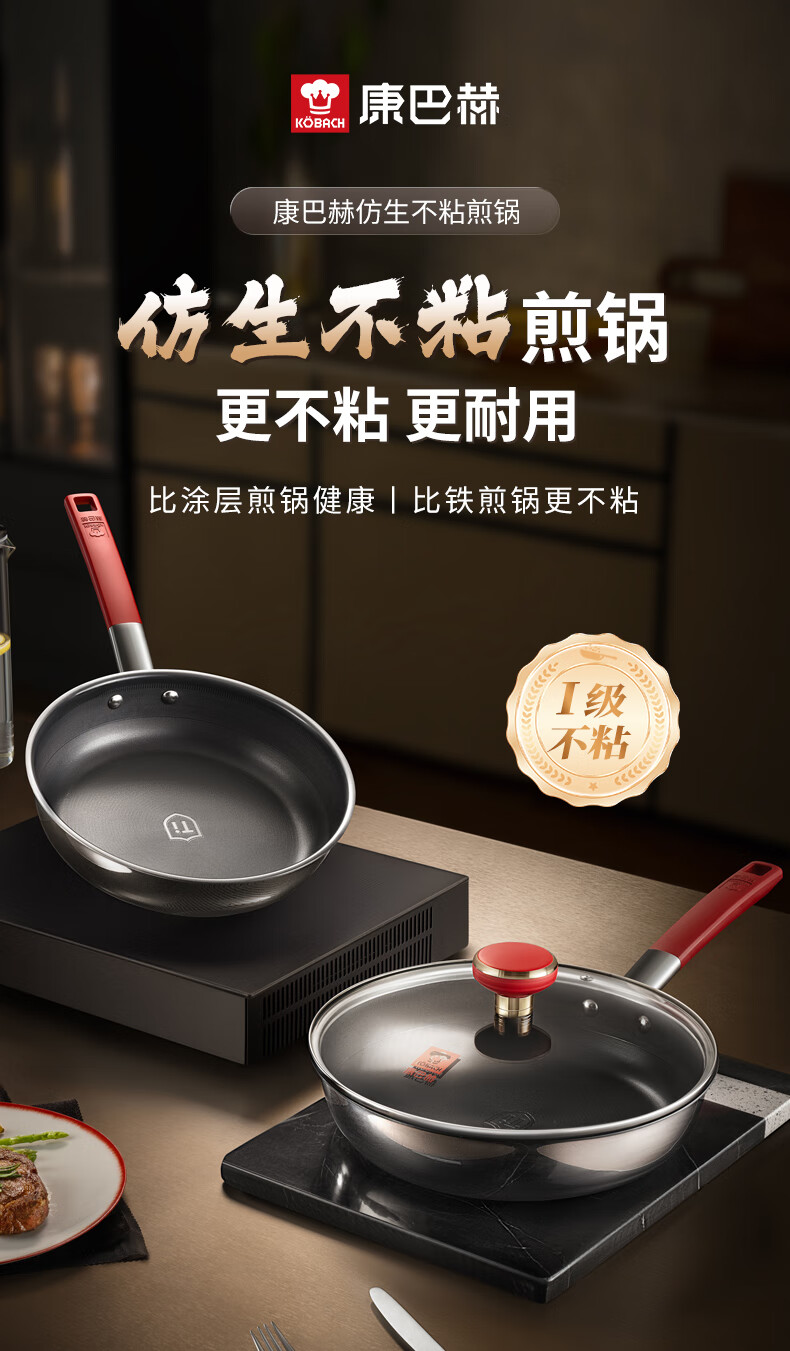 康巴赫平底锅不粘锅有钛仿生煎锅不锈钢家用牛排煎蛋锅电磁炉通用26cm 仿生不粘煎锅/个