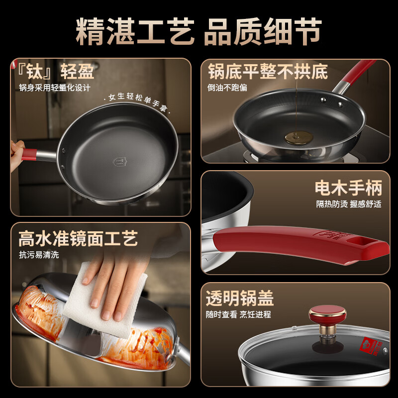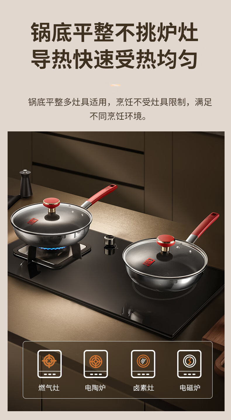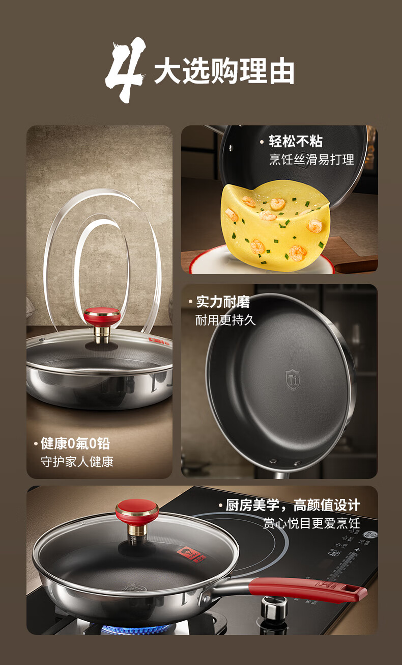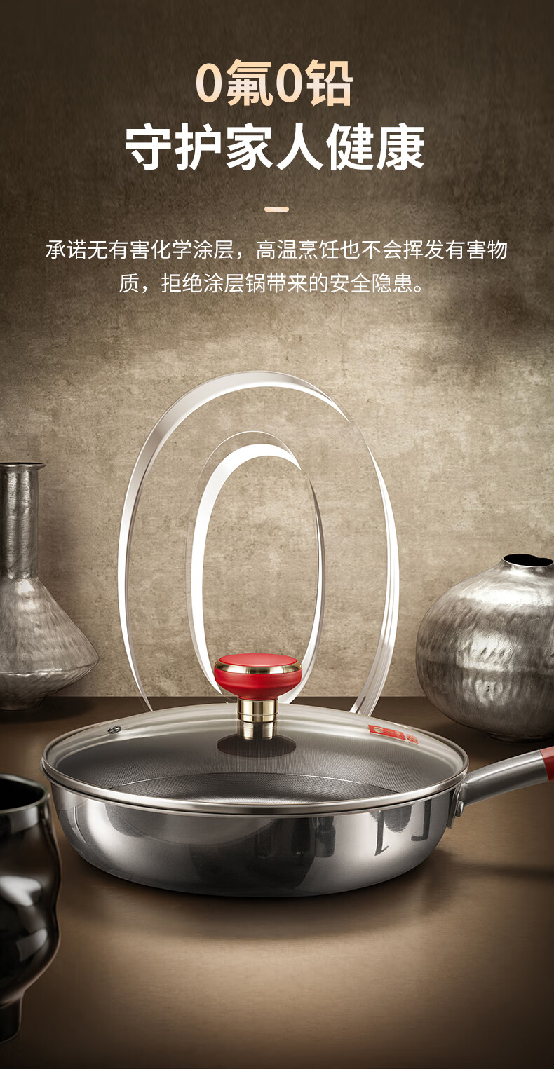 康巴赫平底锅不粘锅有钛仿生煎锅不锈钢家用牛排煎蛋锅电磁炉通用26cm 仿生不粘煎锅/个