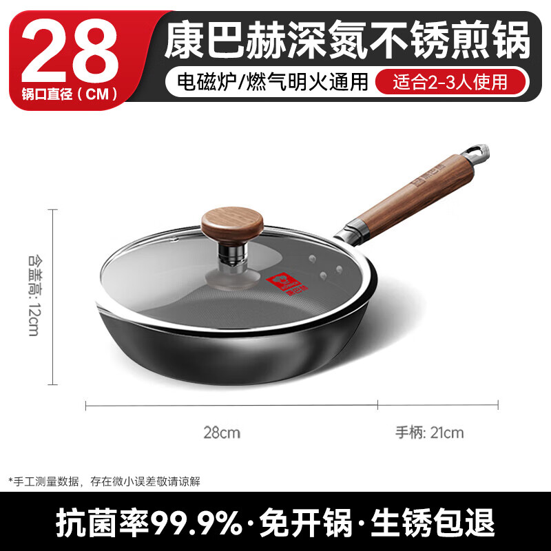 商品名称: 康巴赫平底锅不粘锅煎锅无涂层铁锅免开锅煎蛋锅牛排煎锅早餐锅28CM KGL-J28T/个