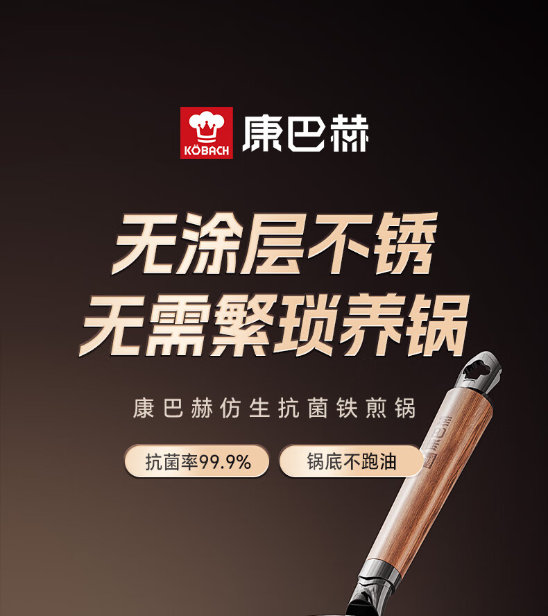 厨具  > 烹饪锅具  > 平底锅/煎锅  >  康巴赫/KBH  >  康巴赫平底锅不粘锅煎锅无涂层铁锅免开锅煎蛋锅牛排煎锅早餐锅28CM KGL-J28T/个