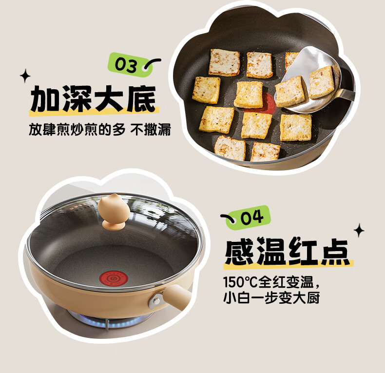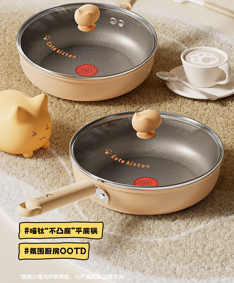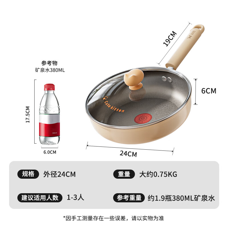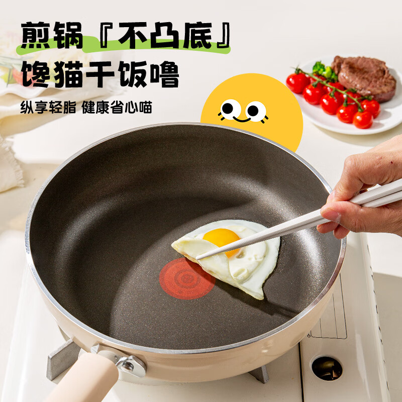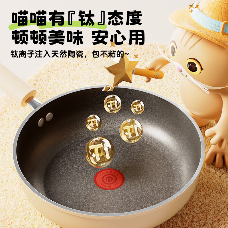 • 商品名称:双枪(Suncha)喵钛平底锅加深不粘煎锅轻油家用牛排煎蛋饼锅24cm DG40614/个