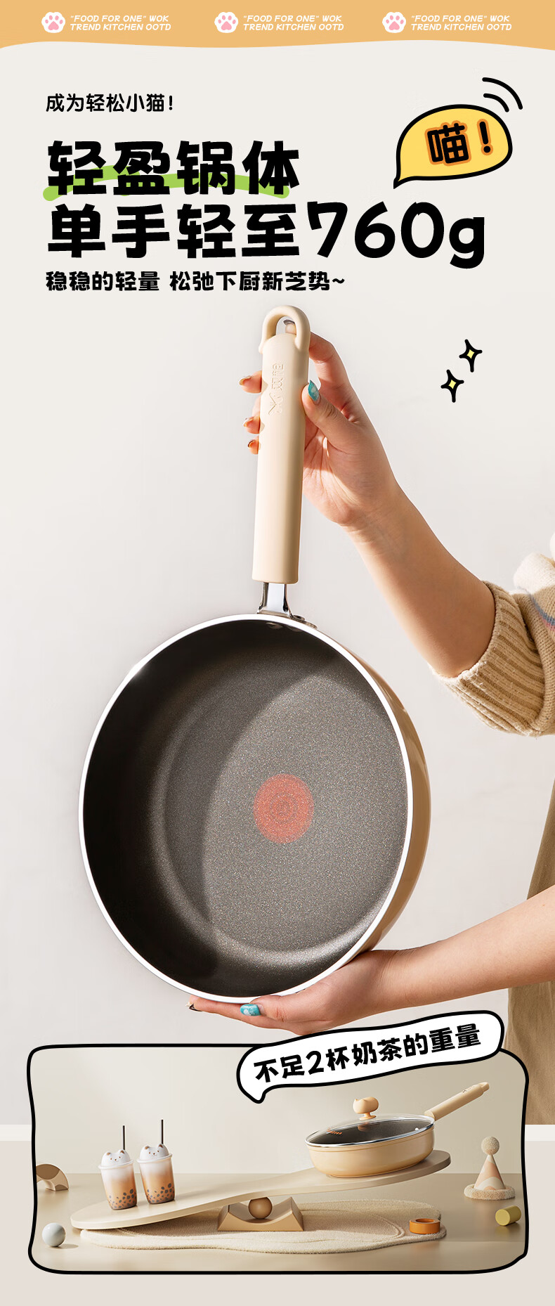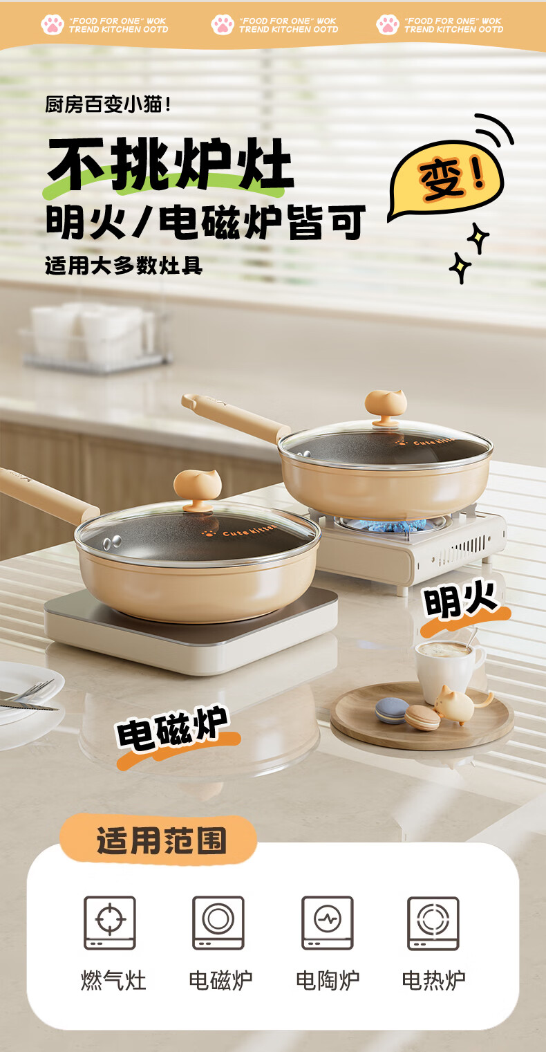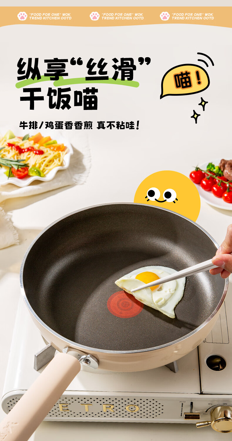 • 商品名称:双枪(Suncha)喵钛平底锅加深不粘煎锅轻油家用牛排煎蛋饼锅24cm DG40614/个