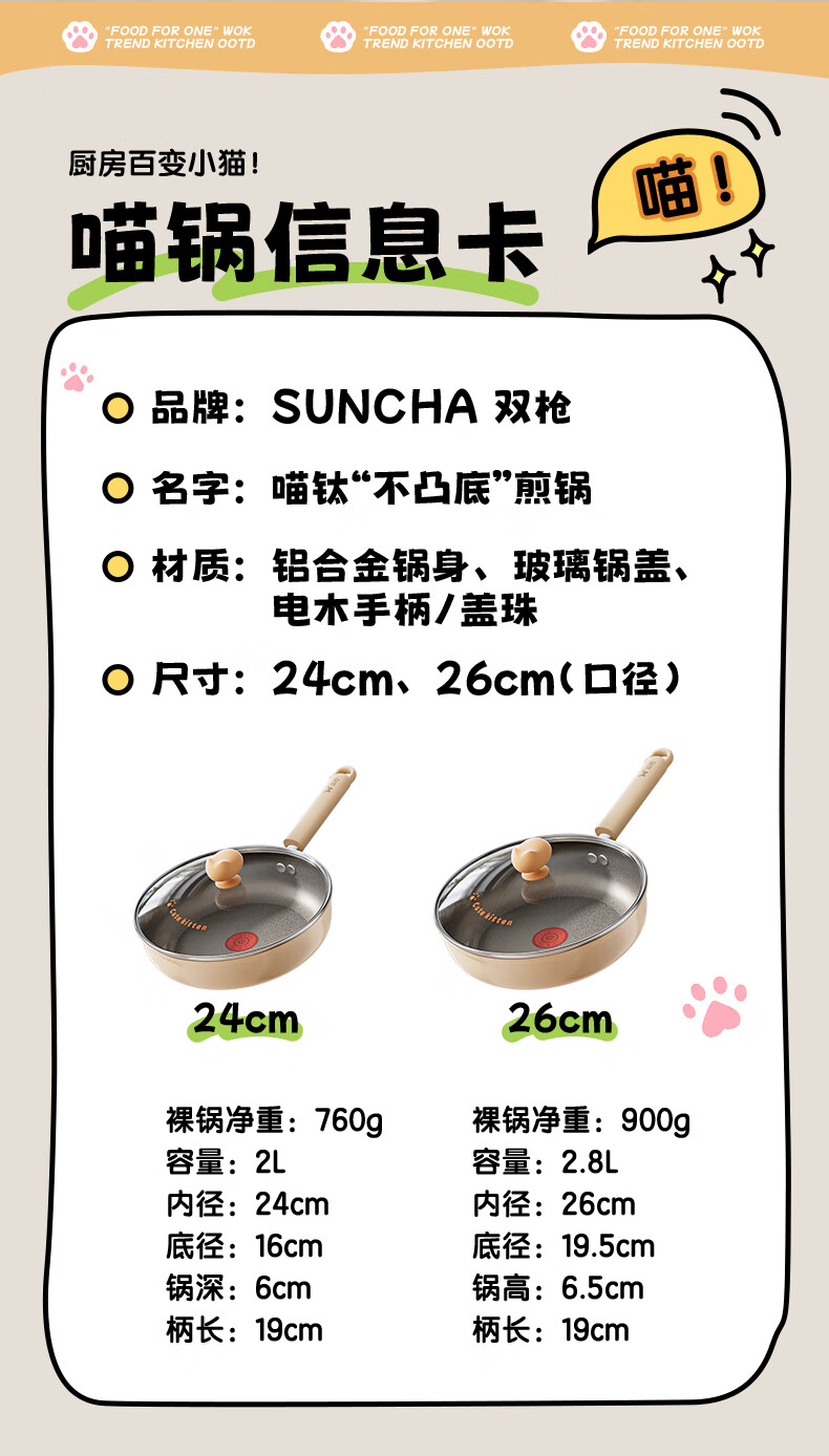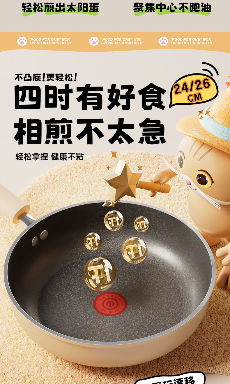 商品名称: 双枪(Suncha)喵钛平底锅加深不粘煎锅轻油家用牛排煎蛋饼锅24cm DG40614/个