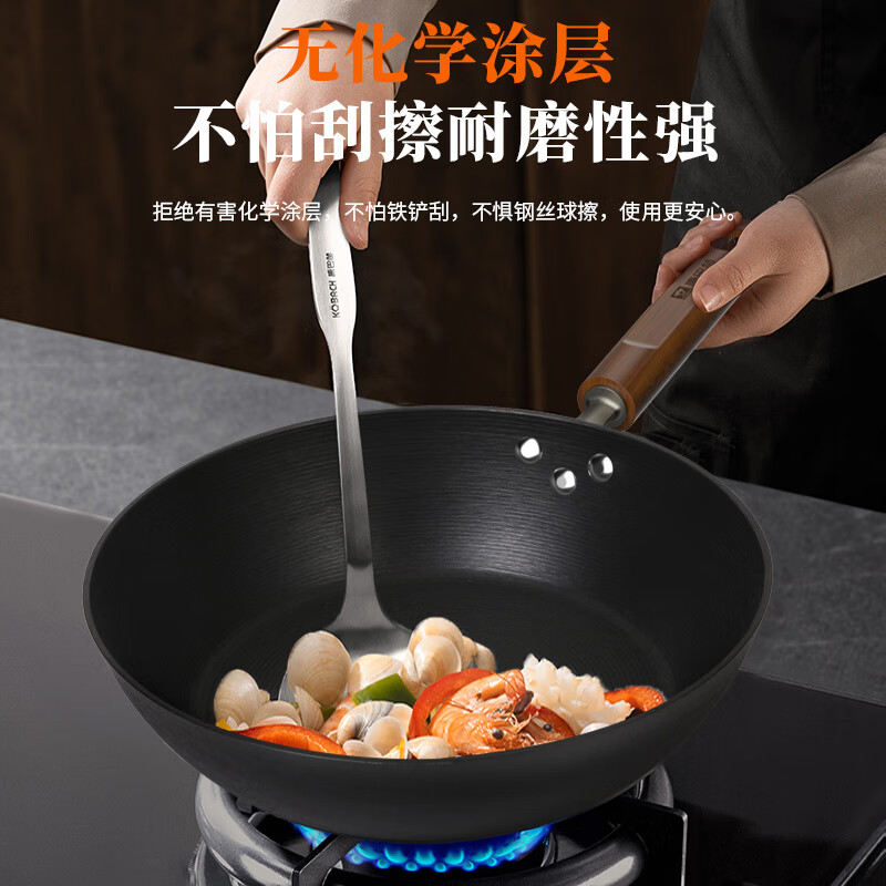 康巴赫平底锅有钛铸铁煎锅无涂层铁锅免开锅煎蛋锅牛排煎锅早餐锅26cm KGB-J26Z/个