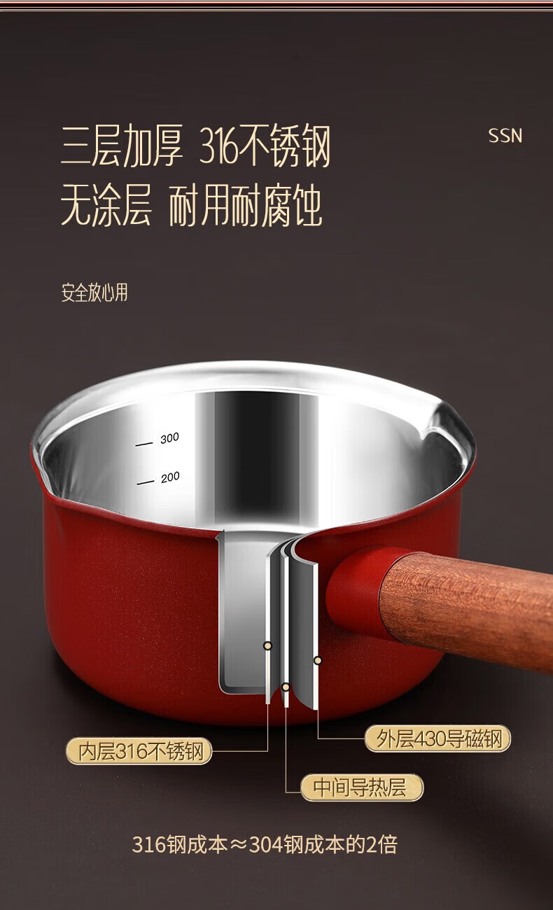 • 商品名称:SSN热油锅家用油泼迷你小锅316不锈钢泼油锅烧油小锅小油锅热油小锅 29201/个