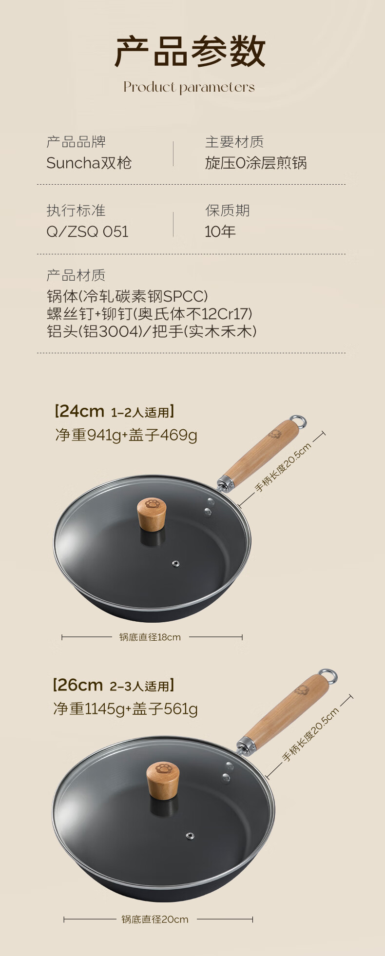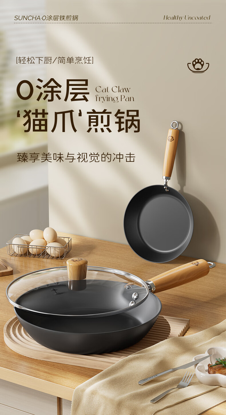 厨具  > 烹饪锅具  > 平底锅/煎锅  >  双枪/Suncha  >  双枪平底不沾煎锅无涂层牛排煎蛋炒菜锅少油烟电磁燃气通用26cm无盖 DG40613/个