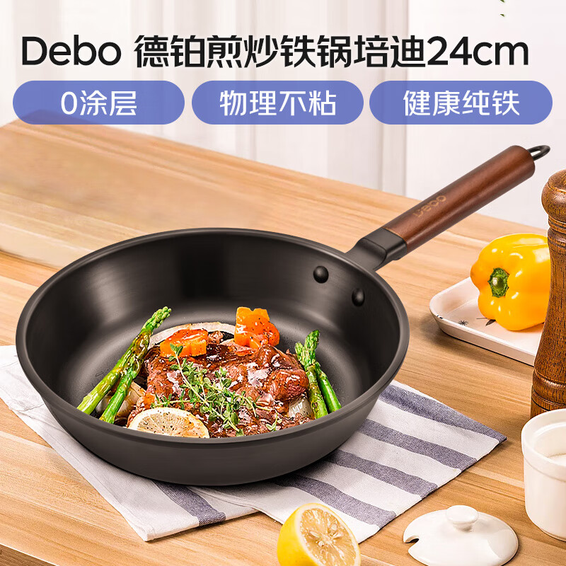 厨具  > 烹饪锅具  > 平底锅/煎锅  >  Debo  >  Debo德铂煎锅无涂层锈不了煎炒铁锅培迪24cm DEP-DS178/个