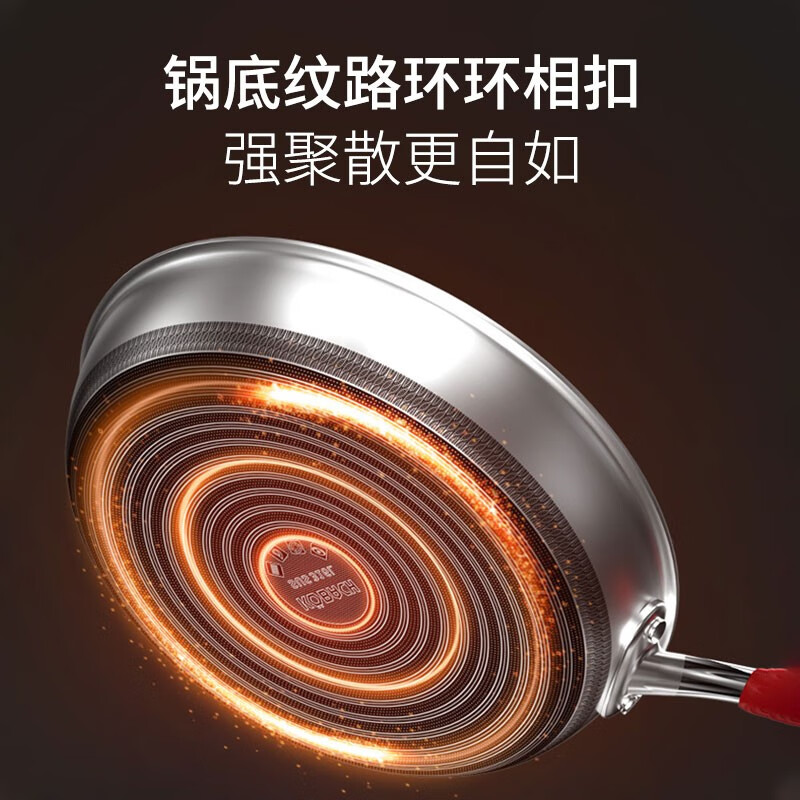 康巴赫煎锅不粘锅平底锅316L不锈钢双面蜂窝煎28cm悦厨早餐锅燃气灶通用 KGY-J28A/个