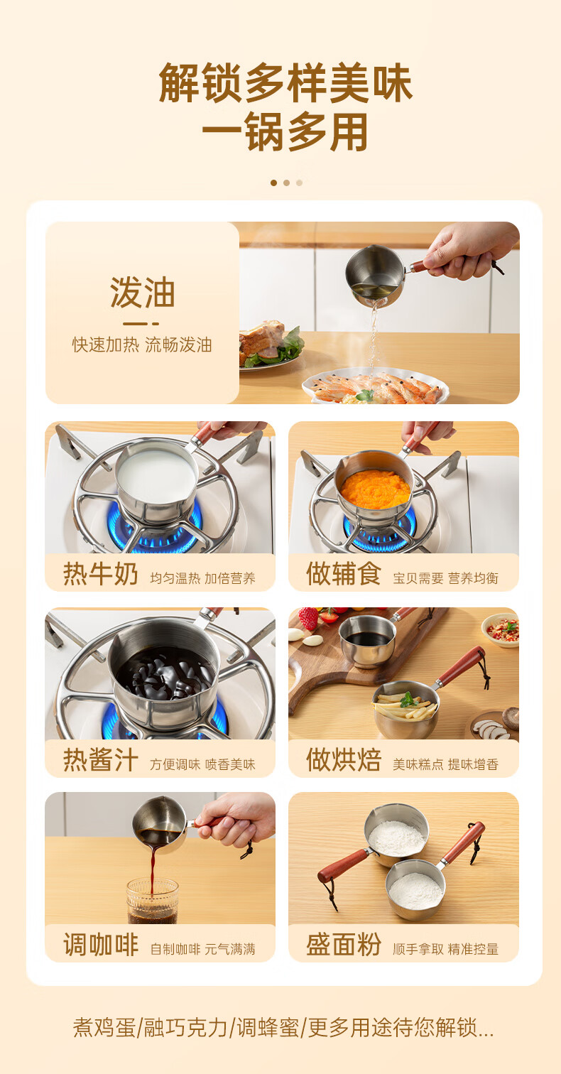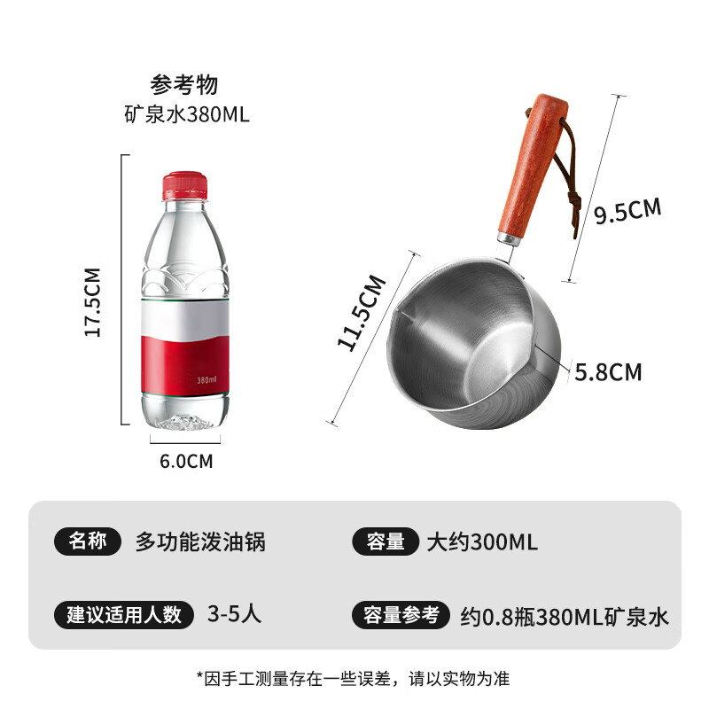 商品名称: 双枪(Suncha)泼油小锅304不锈钢迷你不粘锅热油小锅炝淋浇油煎蛋锅家用300ml DG20902/把