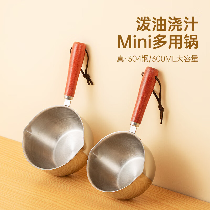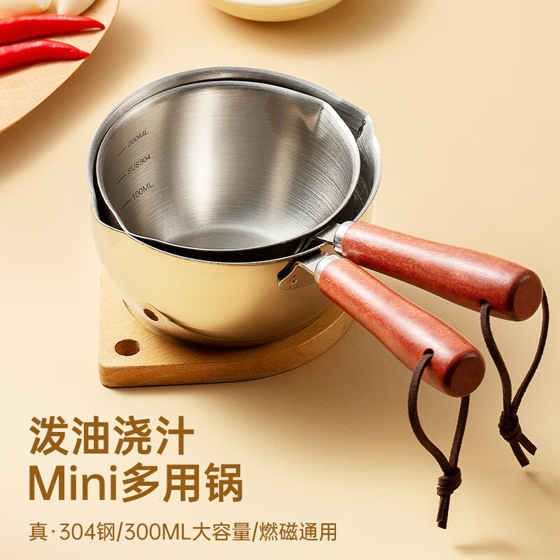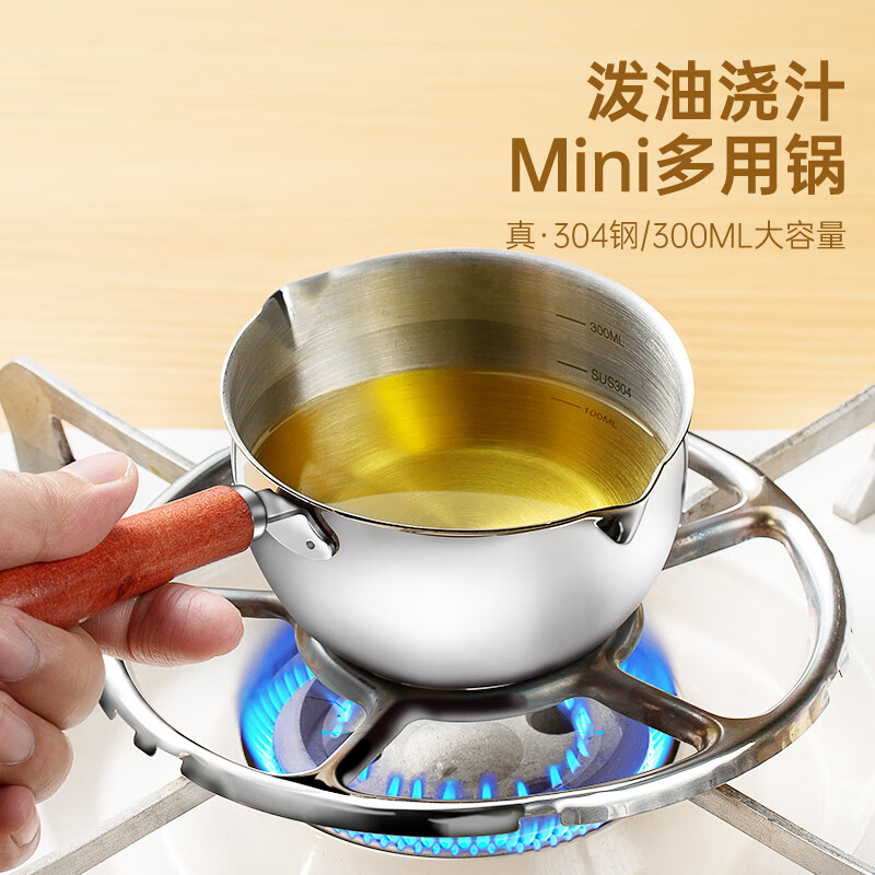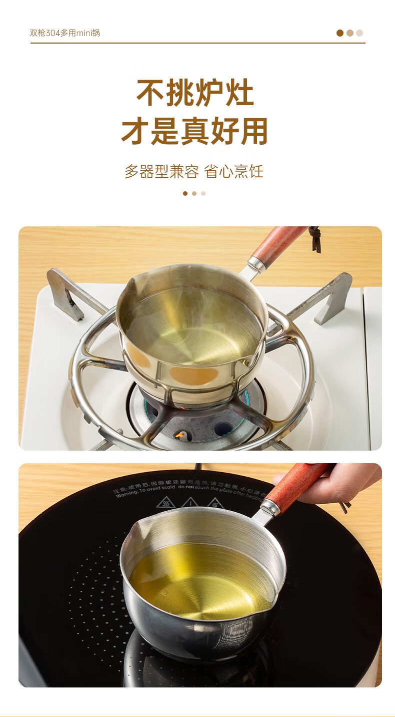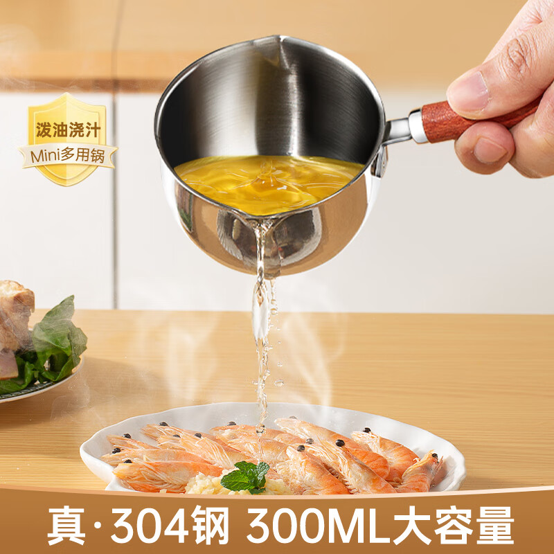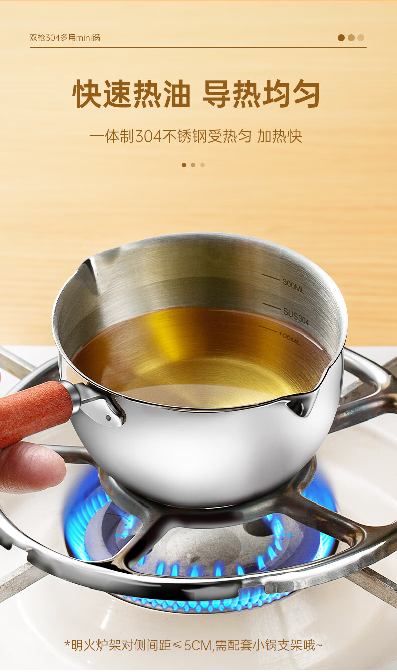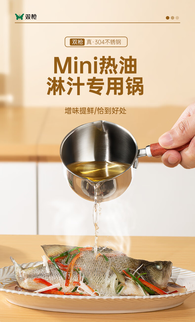 双枪(Suncha)泼油小锅304不锈钢迷你不粘锅热油小锅炝淋浇油煎蛋锅家用300ml DG20902/把