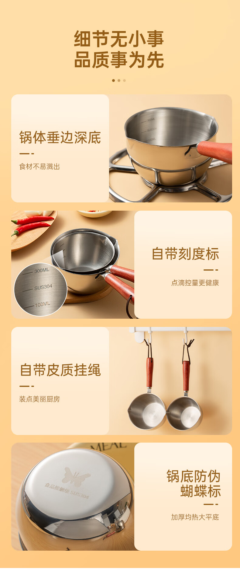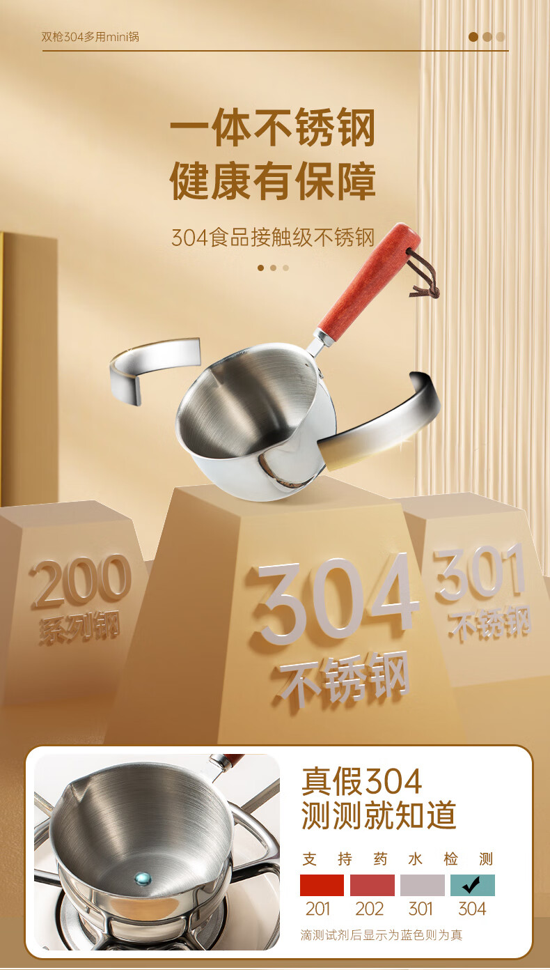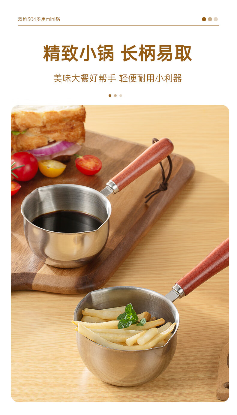 厨具  > 烹饪锅具  > 平底锅/煎锅  >  双枪/Suncha  >  双枪(Suncha)泼油小锅304不锈钢迷你不粘锅热油小锅炝淋浇油煎蛋锅家用300ml DG20902/把