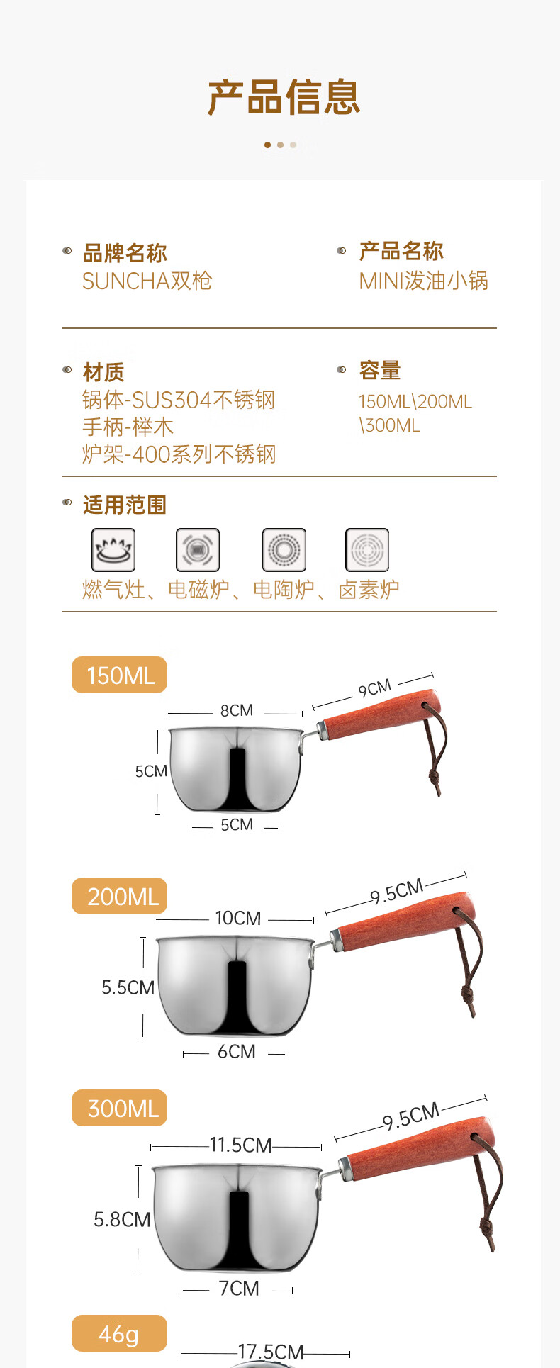 • 商品名称:双枪(Suncha)泼油小锅304不锈钢迷你不粘锅热油小锅炝淋浇油煎蛋锅家用300ml DG20902/把