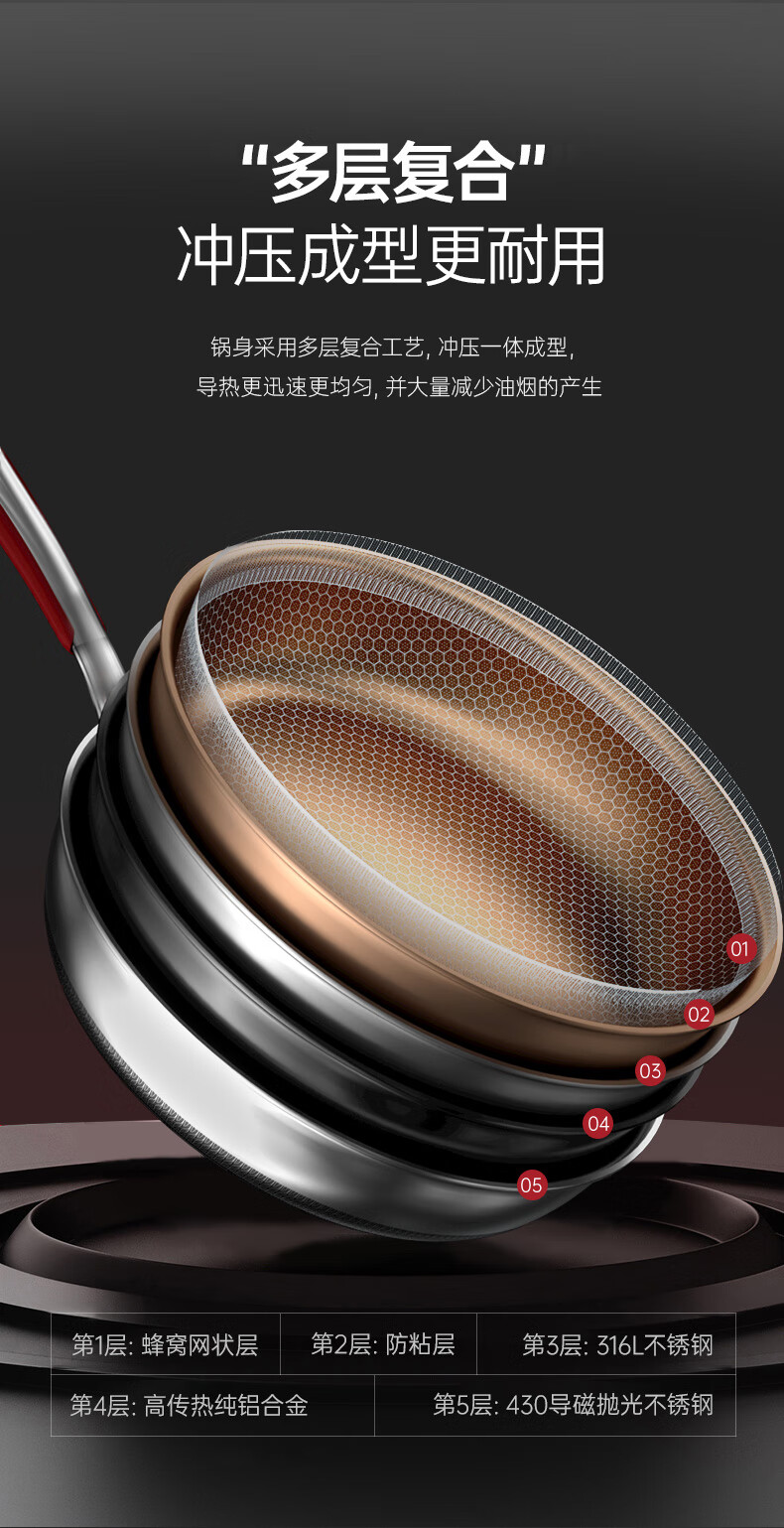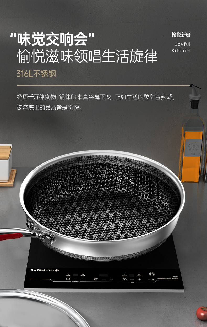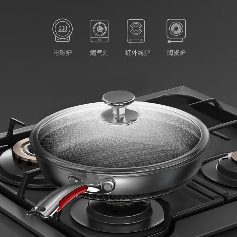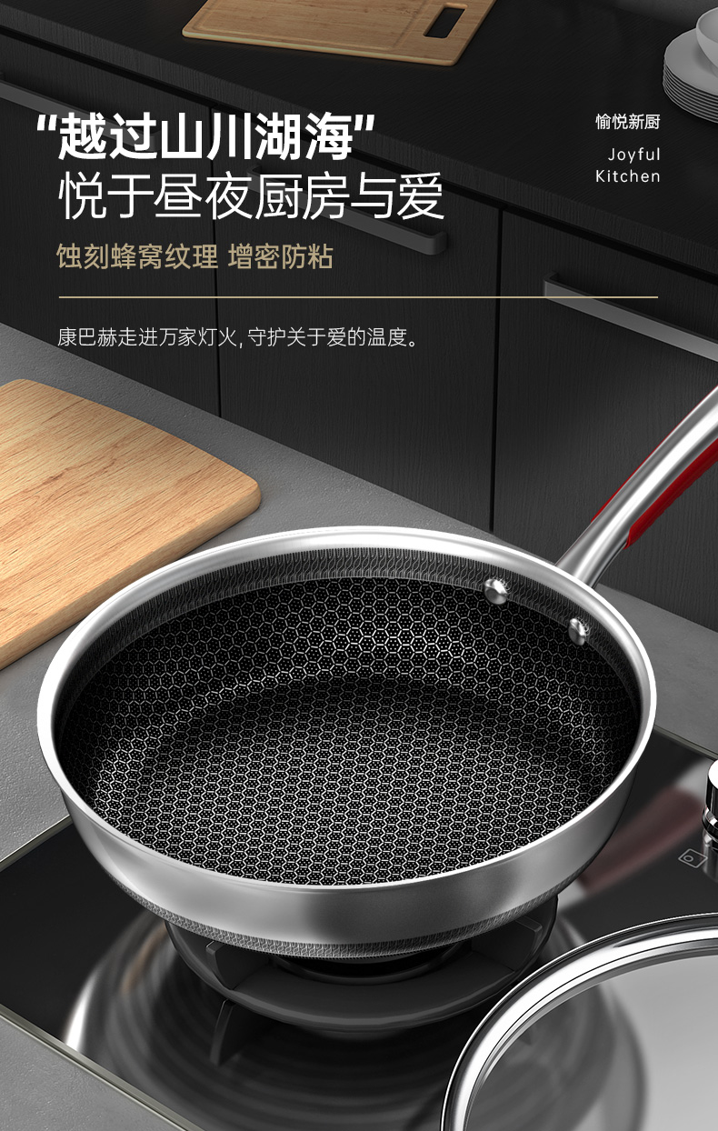 • 商品名称:康巴赫煎锅316L不锈钢不粘平底锅升级双面蜂窝悦厨26cm电磁炉燃气通用 KGY-J26A/个
