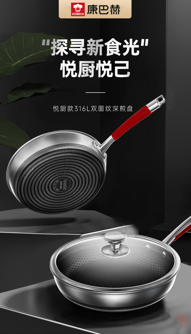 厨具  > 烹饪锅具  > 平底锅/煎锅  >  康巴赫/KBH  >  康巴赫煎锅316L不锈钢不粘平底锅升级双面蜂窝悦厨26cm电磁炉燃气通用 KGY-J26A/个