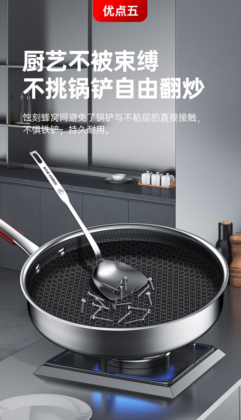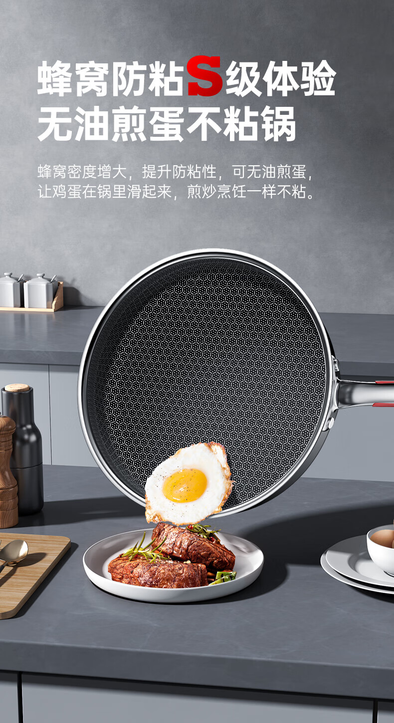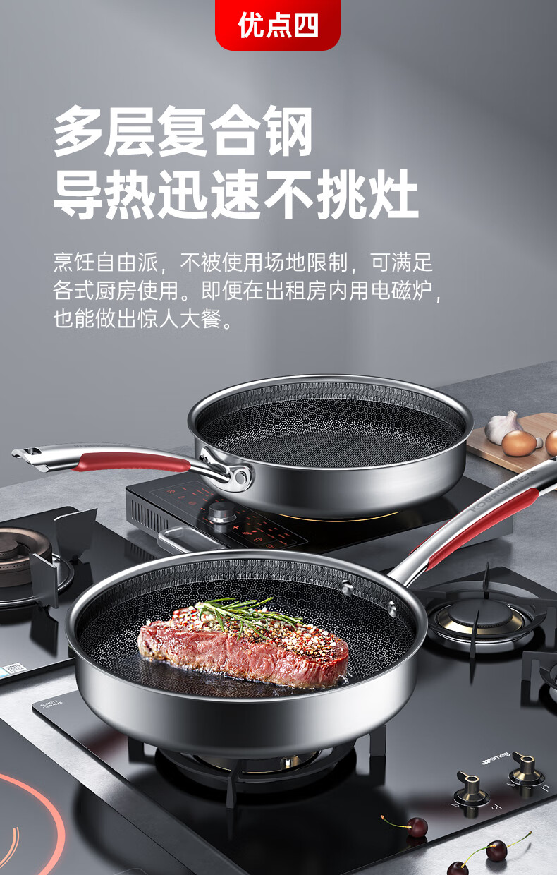 商品名称: 康巴赫旗舰S款316L不锈钢平底锅蜂窝家用煎牛排煎烙饼煎蛋不粘锅电磁炉 旗舰S煎锅/个