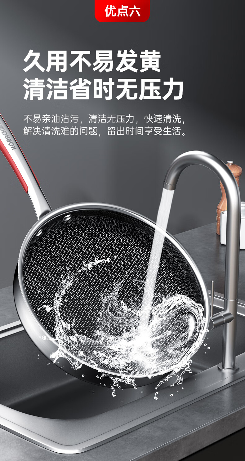 厨具  > 烹饪锅具  > 平底锅/煎锅  >  康巴赫/KBH  >  康巴赫旗舰S款316L不锈钢平底锅蜂窝家用煎牛排煎烙饼煎蛋不粘锅电磁炉 旗舰S煎锅/个