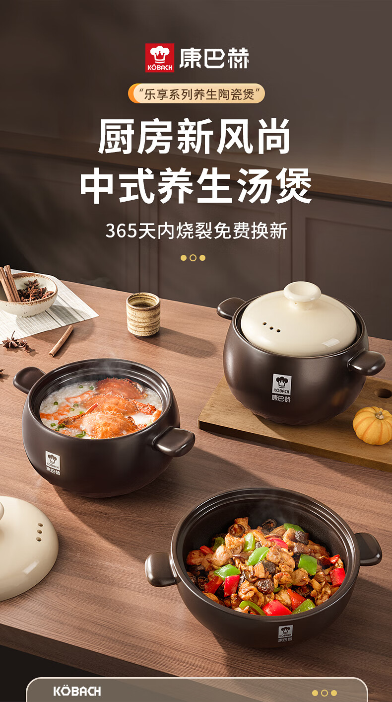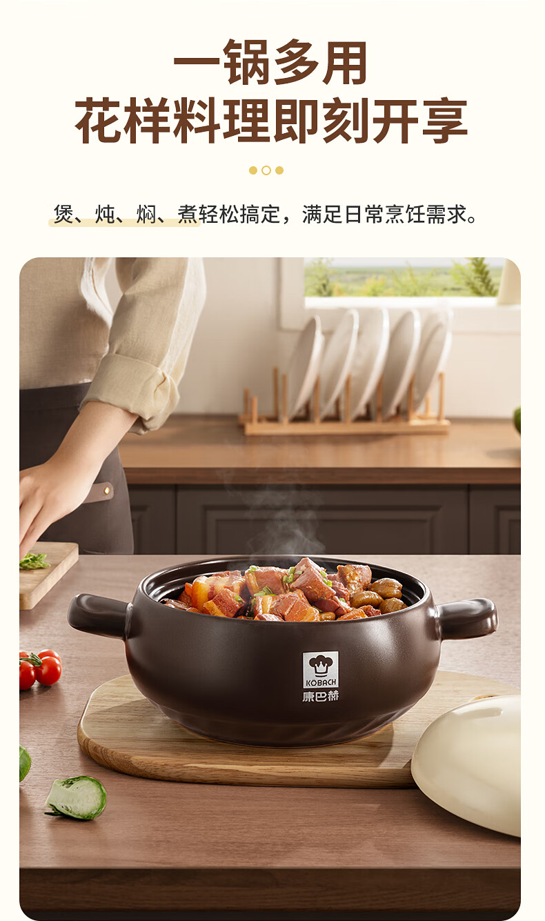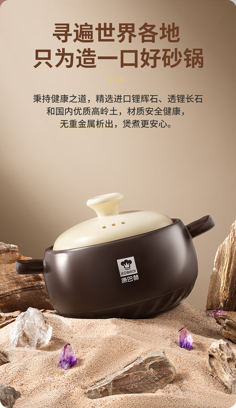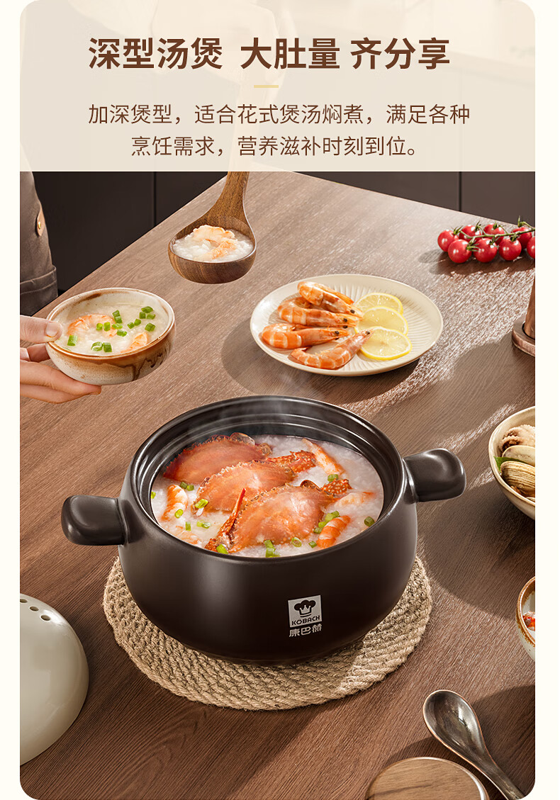 厨具  > 烹饪锅具  > 砂锅  >  康巴赫/KBH  >  康巴赫(KOBACH)砂锅煲汤锅耐高温不开裂炖锅家用多功能陶瓷煲4L KBY-T4500/个