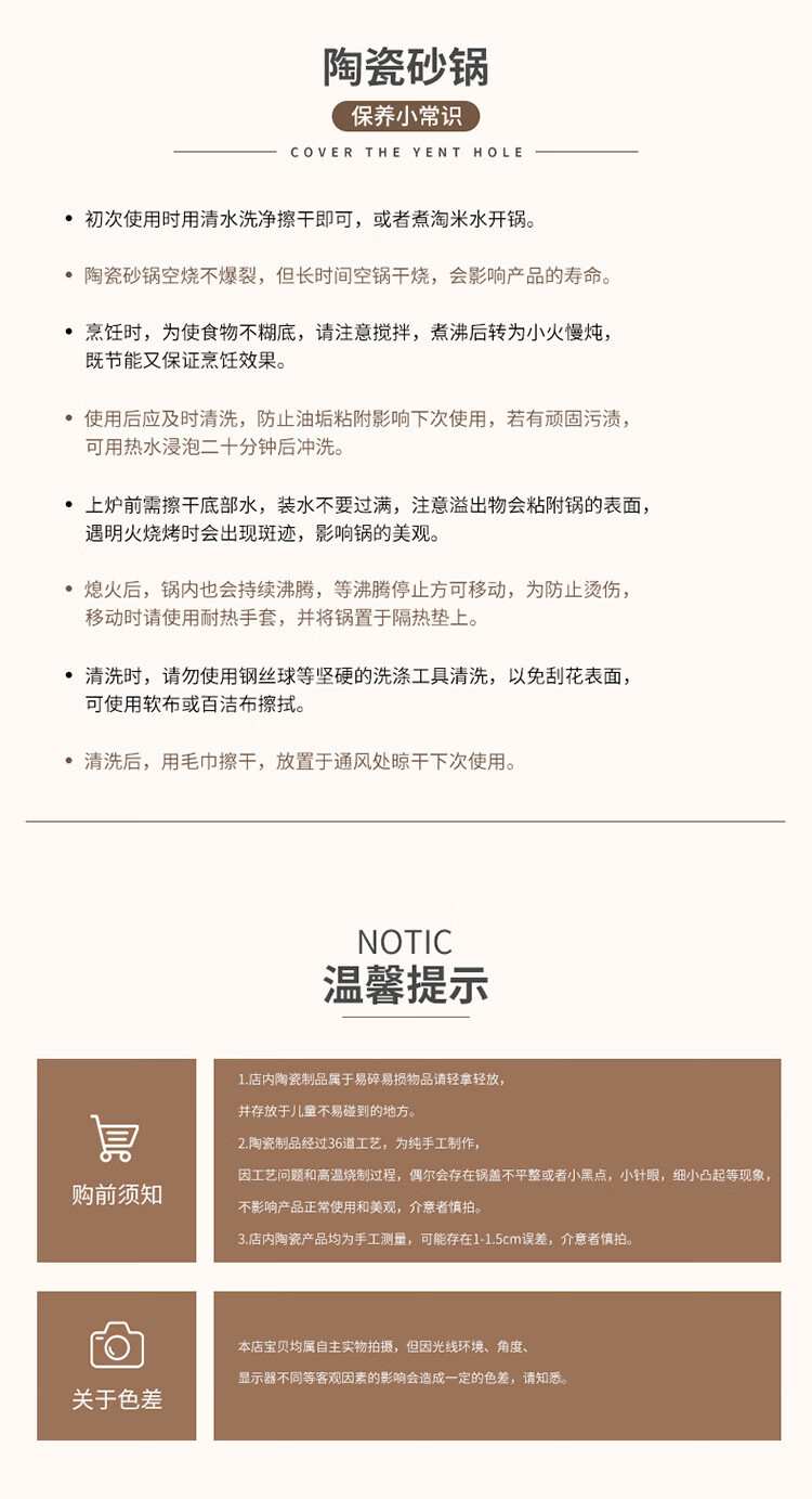 商品名称: 思凯卓陶瓷砂锅煲汤锅炖锅养生煲家用大容量耐高温干烧不开裂定制链接 陶瓷砂锅定制链接/个