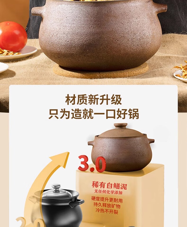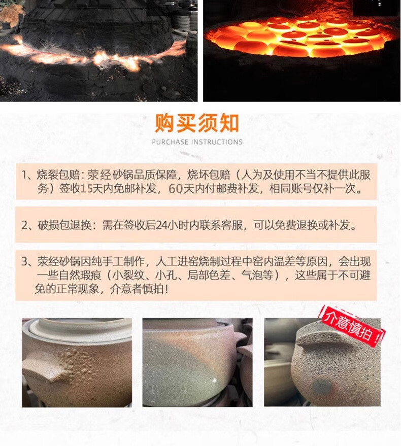 • 商品名称:智星辉荥经无釉砂锅家用燃气汤锅无涂层煲汤干烧不开裂土砂锅汤煲炖汤 7L【耐高温大火】免费开锅送赠品/个