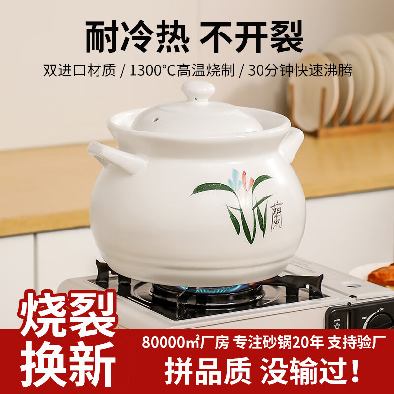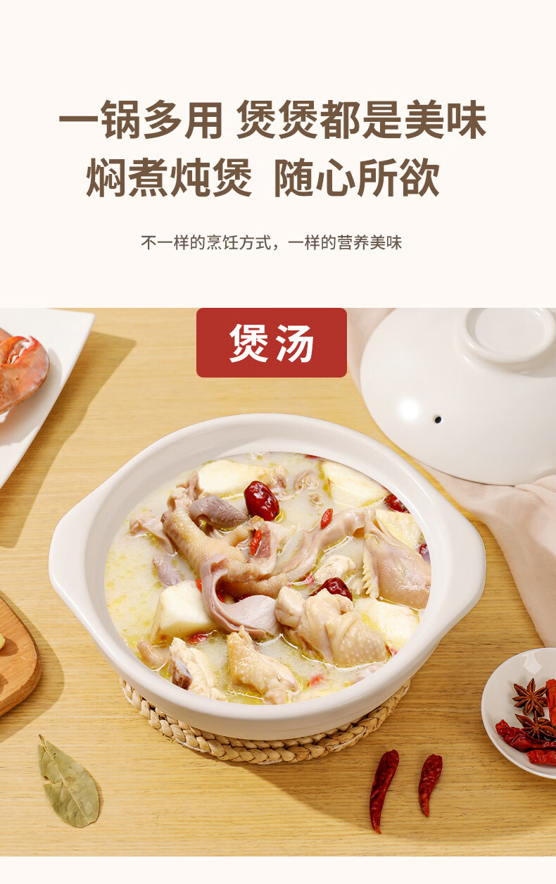 商品名称: 思凯卓陶瓷砂锅煲汤锅炖锅养生煲家用宽口大容量耐高温干烧不开裂1.7L白 skzsg001/个