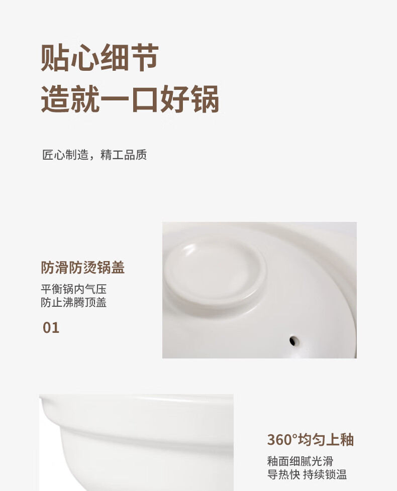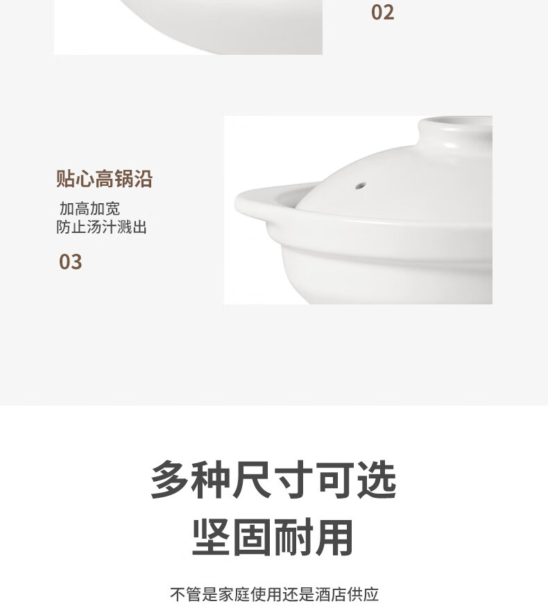 • 商品名称:思凯卓陶瓷砂锅煲汤锅炖锅养生煲家用宽口大容量耐高温干烧不开裂1.7L白 skzsg001/个