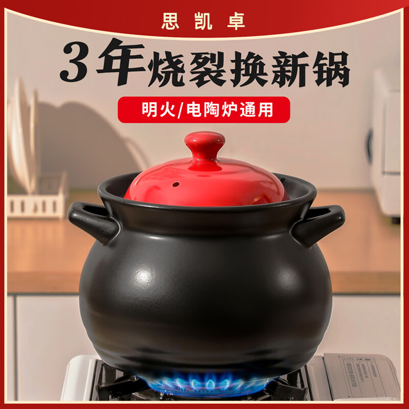 厨具  > 烹饪锅具  > 砂锅  >  思凯卓  >  思凯卓陶瓷砂锅煲汤锅炖锅养生煲家用宽口大容量耐高温干烧不开裂1.7L白 skzsg001/个
